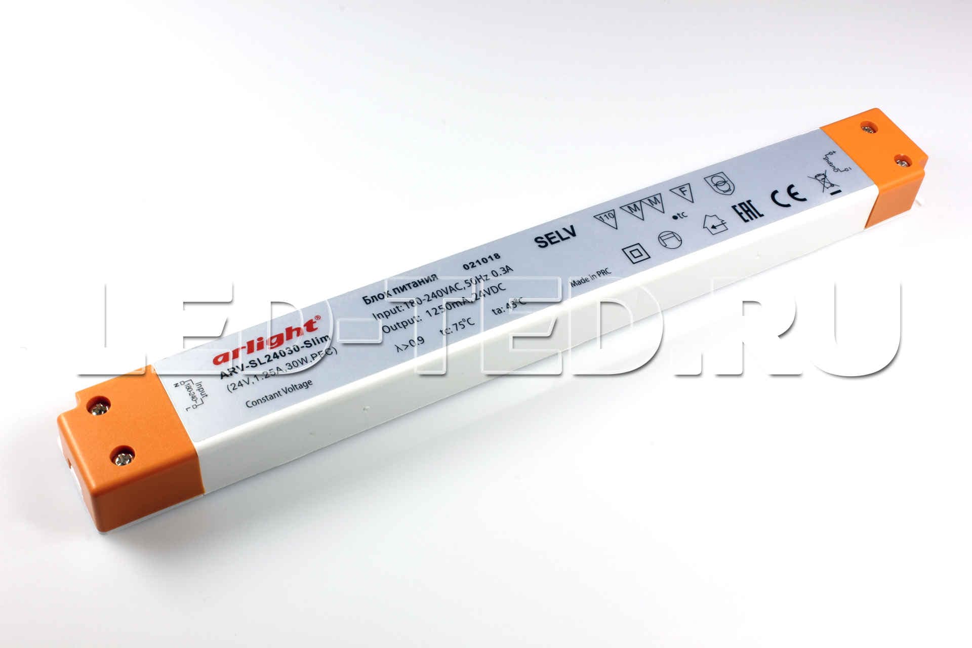 —Блок питания ARV-SL24030-Slim 24V 1.25A 30W PFC открытый импульсный SLIM 021018 Arlight