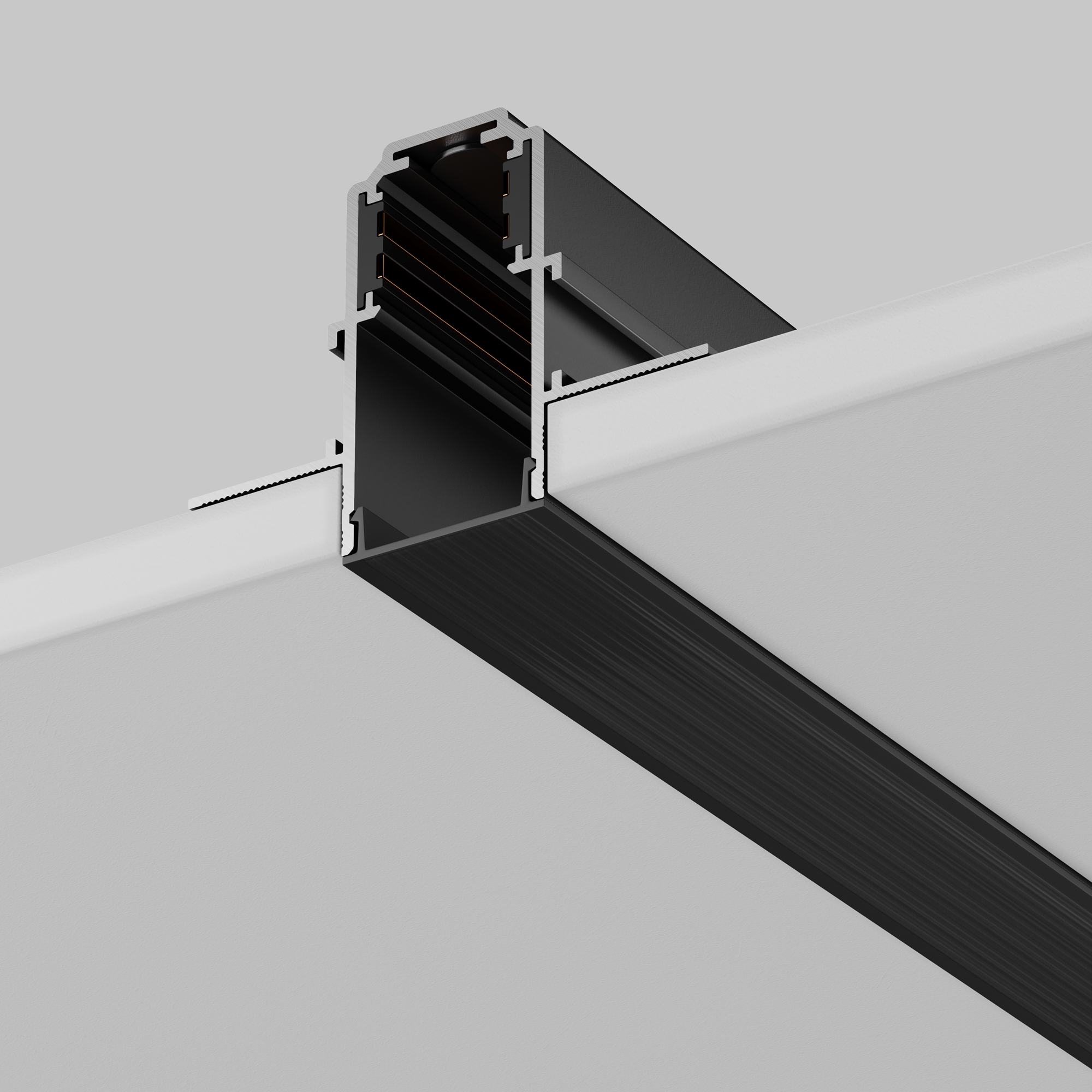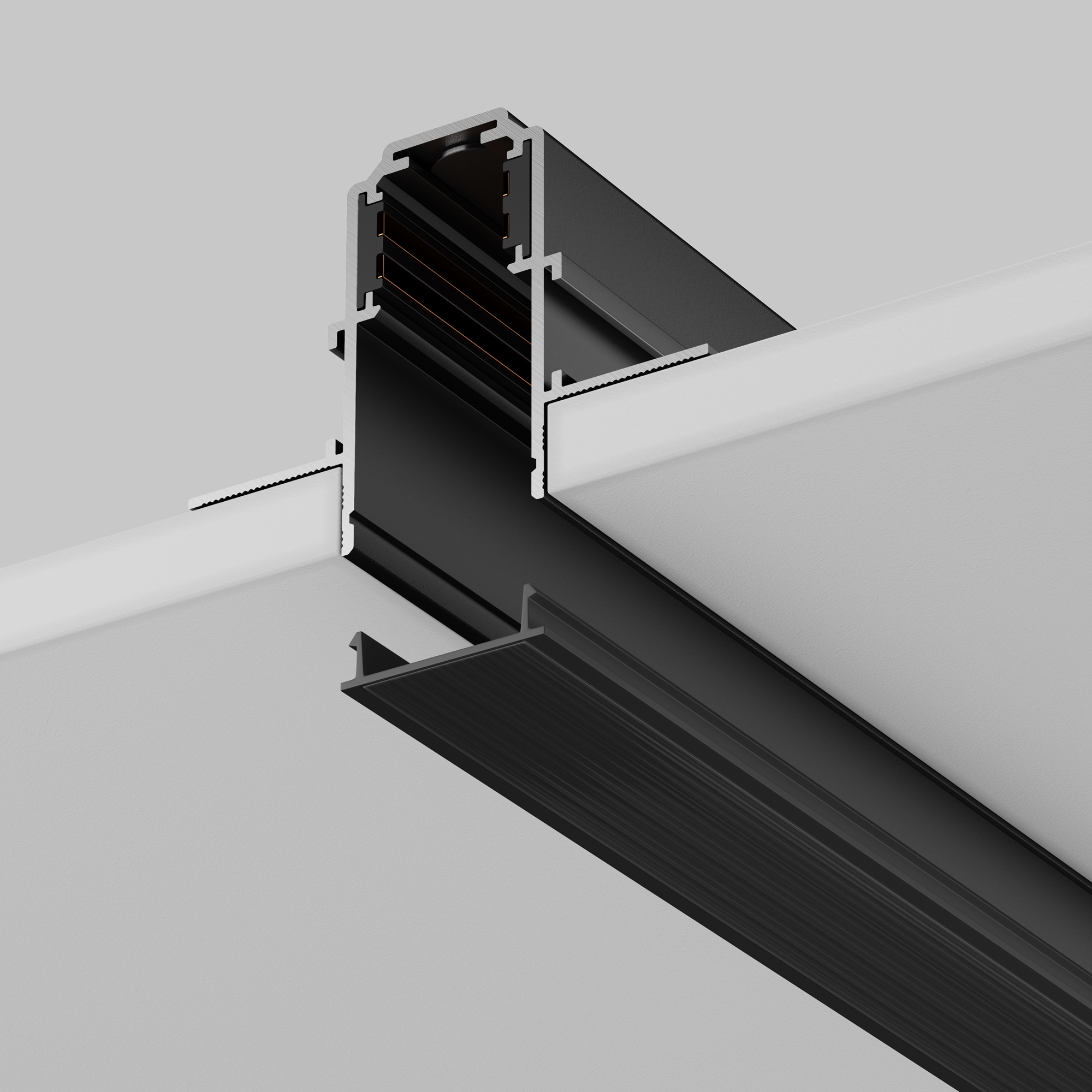 Комплектующие для низковольтной магнитной трековой системы Exility в черном и белом цветах. Разнообразие аксессуаров позволяет собрать свою уникальную конструкцию для накладного монтажа, подвесного, встраиваемого под гипсокартон и встраиваемого в натяжные потолки.