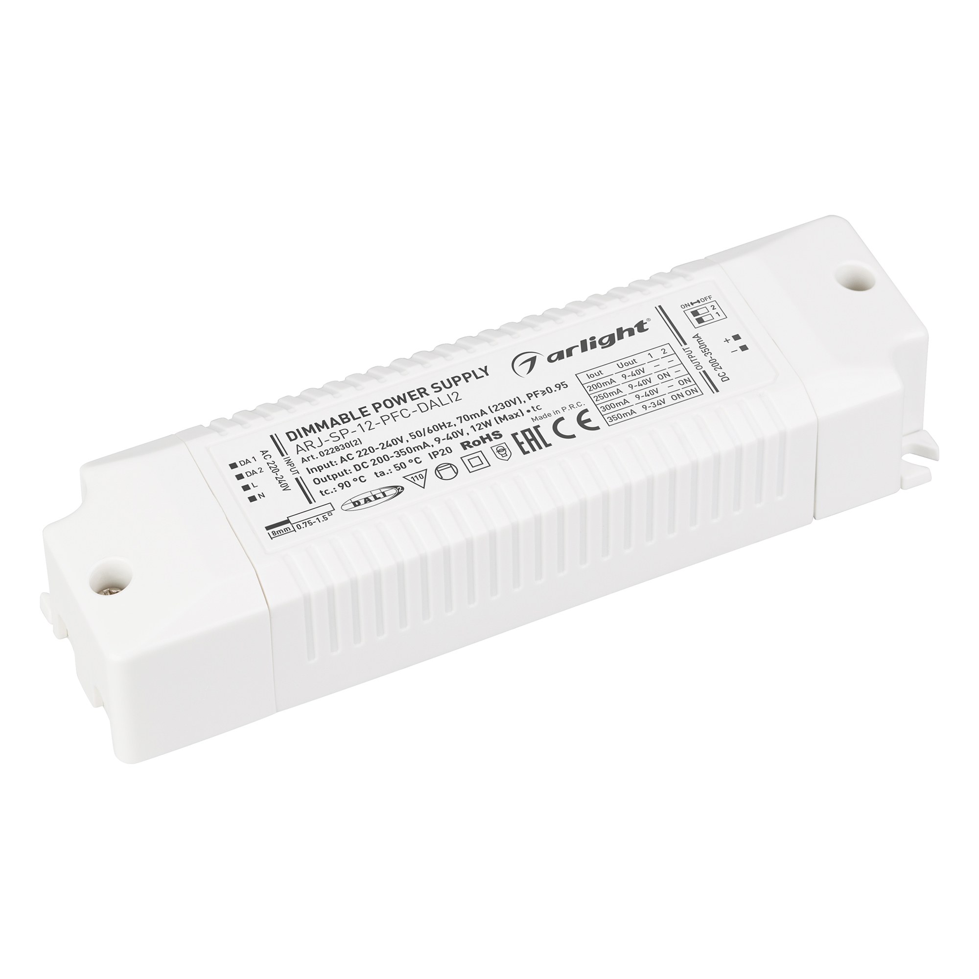 —Блок питания ARJ-SP-12-PFC-DALI2 12W 200-350mA ARL IP20 Пластик 5 лет