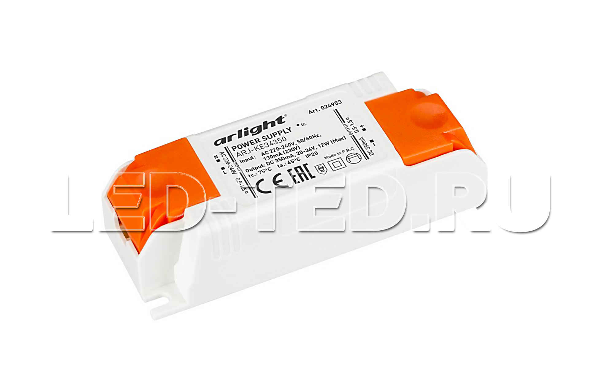 Блок питания 12 Вт, с гальванической развязкой, для мощных светодиодов и светильников. Пластиковый корпус. Сертификат CE (EMC+LVD). Габариты LxWxH: 86x32x23 mm. Вход 220-240V AC, выход 20-34VDC, 350 mA, PF>0.5, пульсация менее 5%, рабочая т-ра -20+45 С. Гарантия 5 лет. 024953