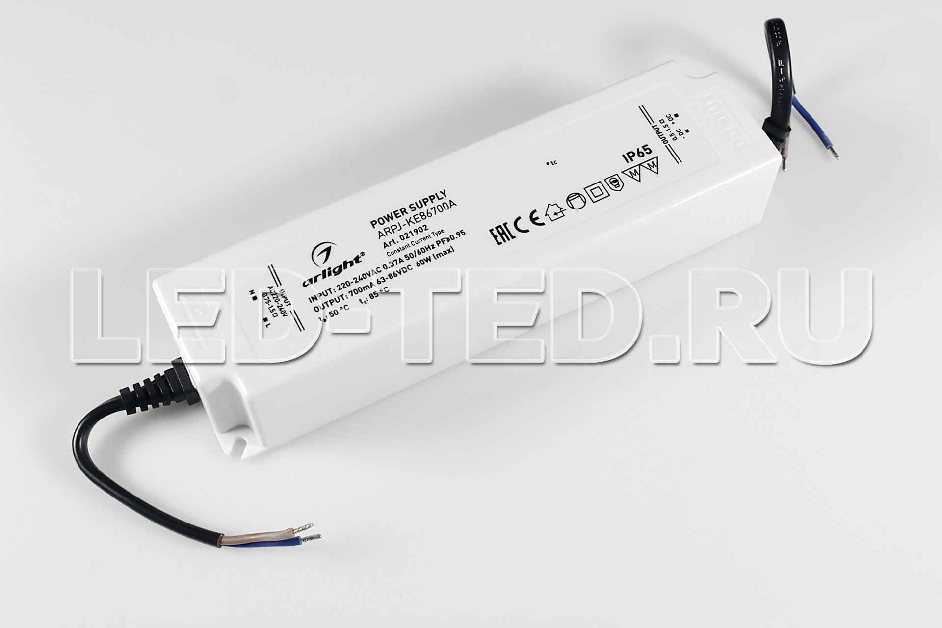 —Драйвер 700mA 60Вт 63-86 162х43х32 ARPJ-KE86700A 60W 700mA PFC IP65 Пластик 5 лет
