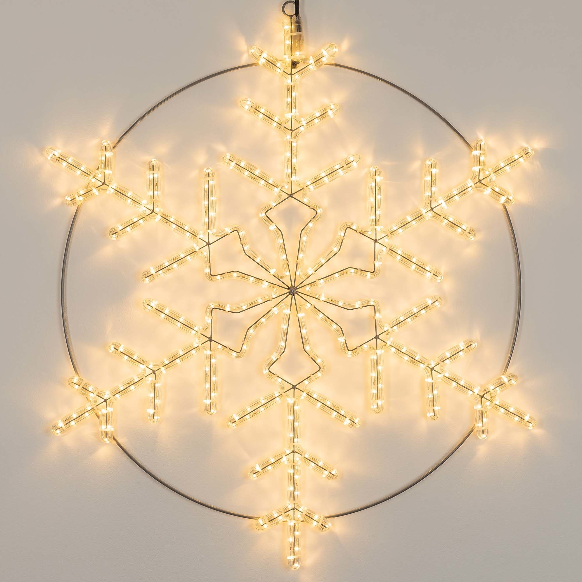 2D фигура из дюралайта "СНЕЖИНКА". Напряжение питания AC 230V, потребляемая мощность 30W. Цвет светодиодов ТЁПЛЫЙ БЕЛЫЙ, количество светодиодов 432 шт. Габариты 920x920 мм. Степень пылевлагозащиты IP65. Провод питания (без вилки). 034251 led-ted.ru