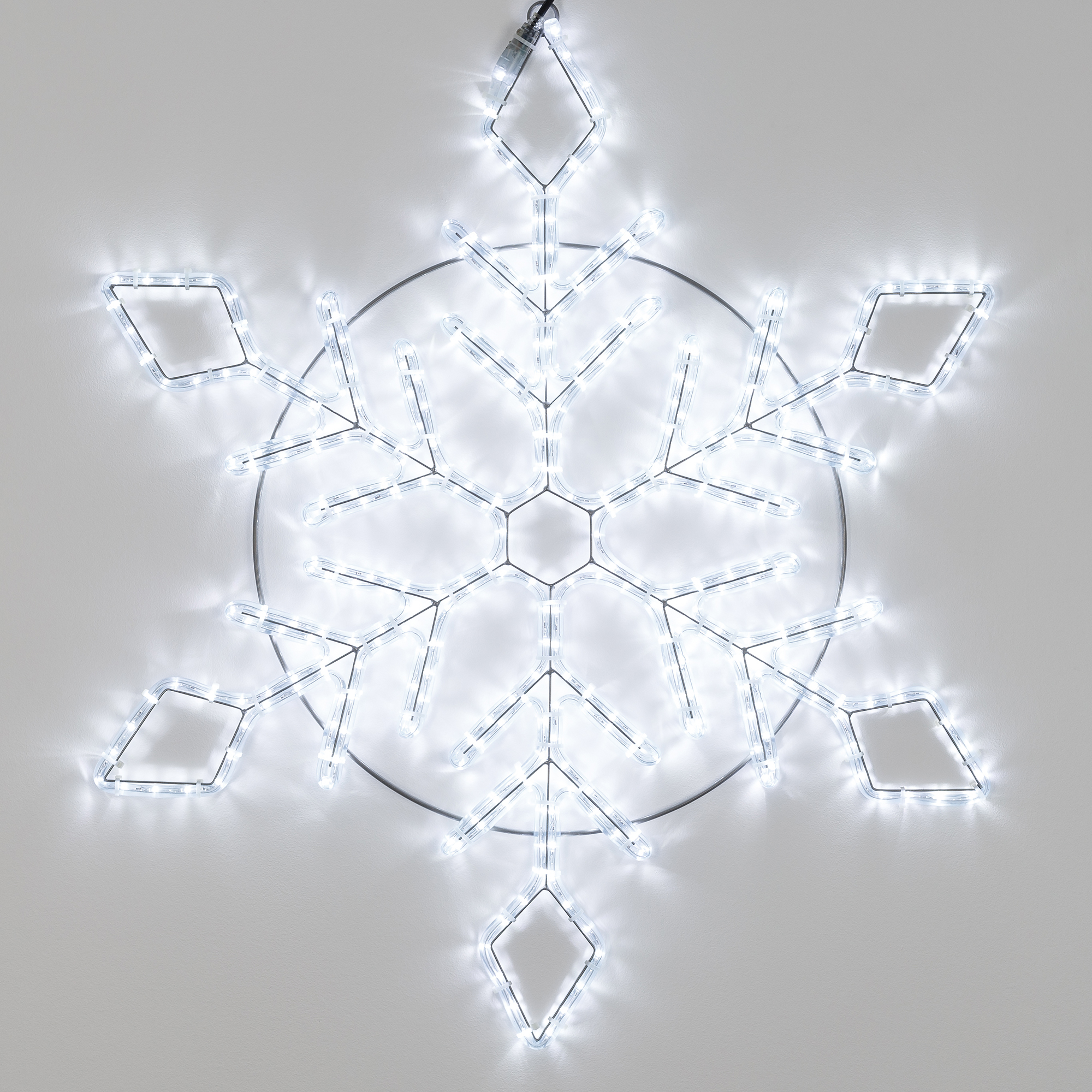 2D фигура из дюралайта "СНЕЖИНКА". Напряжение питания AC 230V, потребляемая мощность 22W. Цвет светодиодов БЕЛЫЙ, количество светодиодов 360 шт. Габариты 900x900 мм. Степень пылевлагозащиты IP65. Провод питания (без вилки). 034256 led-ted.ru