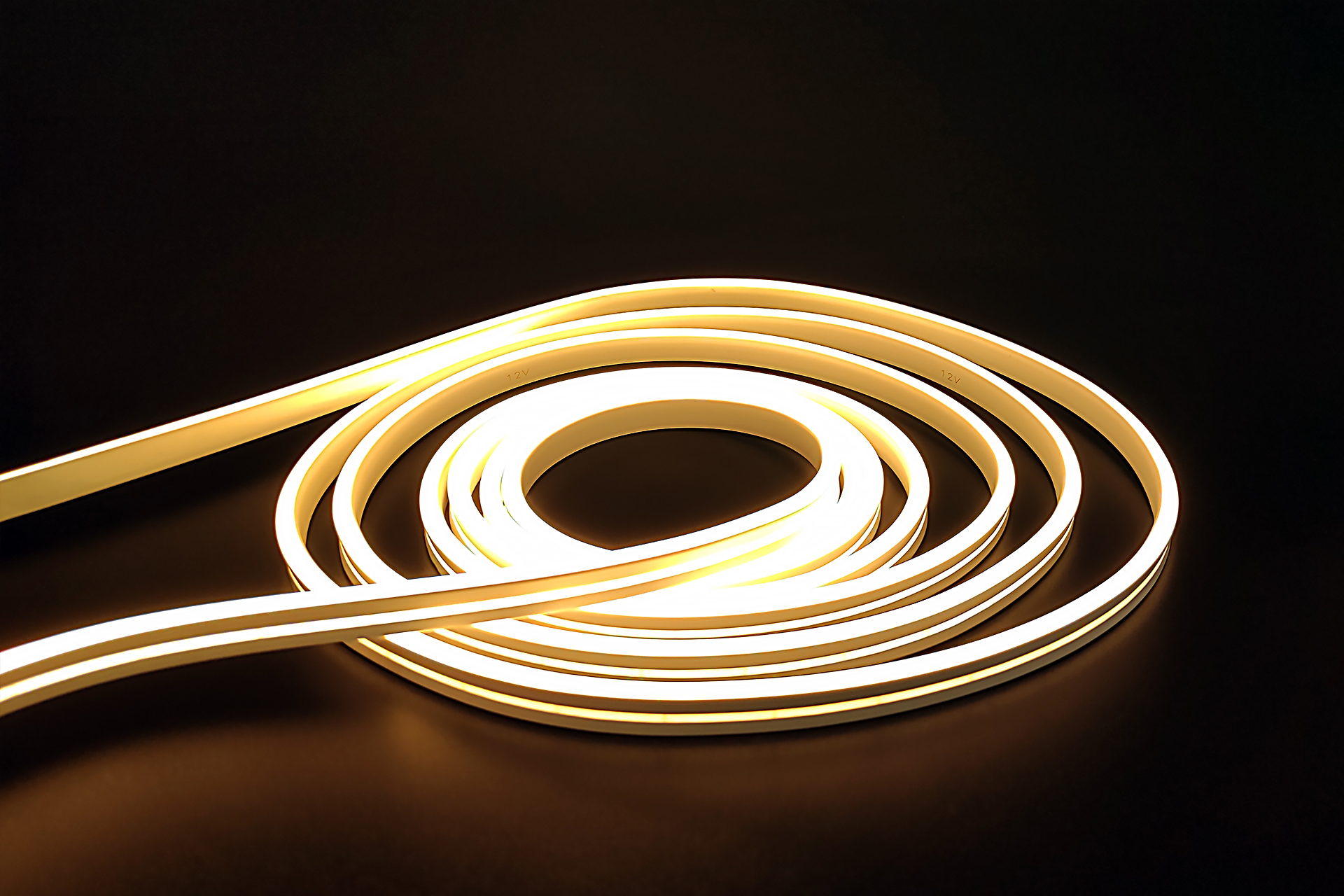 Гибкий неон в ПВХ оболочке. Современные светодиоды SMD2835, 120 шт./м. Сечение неона 12х6мм с боковым изгибом. Степень защиты оболочки IP67, шаг резки 25 мм. Питание от источника постоянного напряжения 12В, потребляемая мощность 10Вт. Цвет свечения тёплый 3000К.