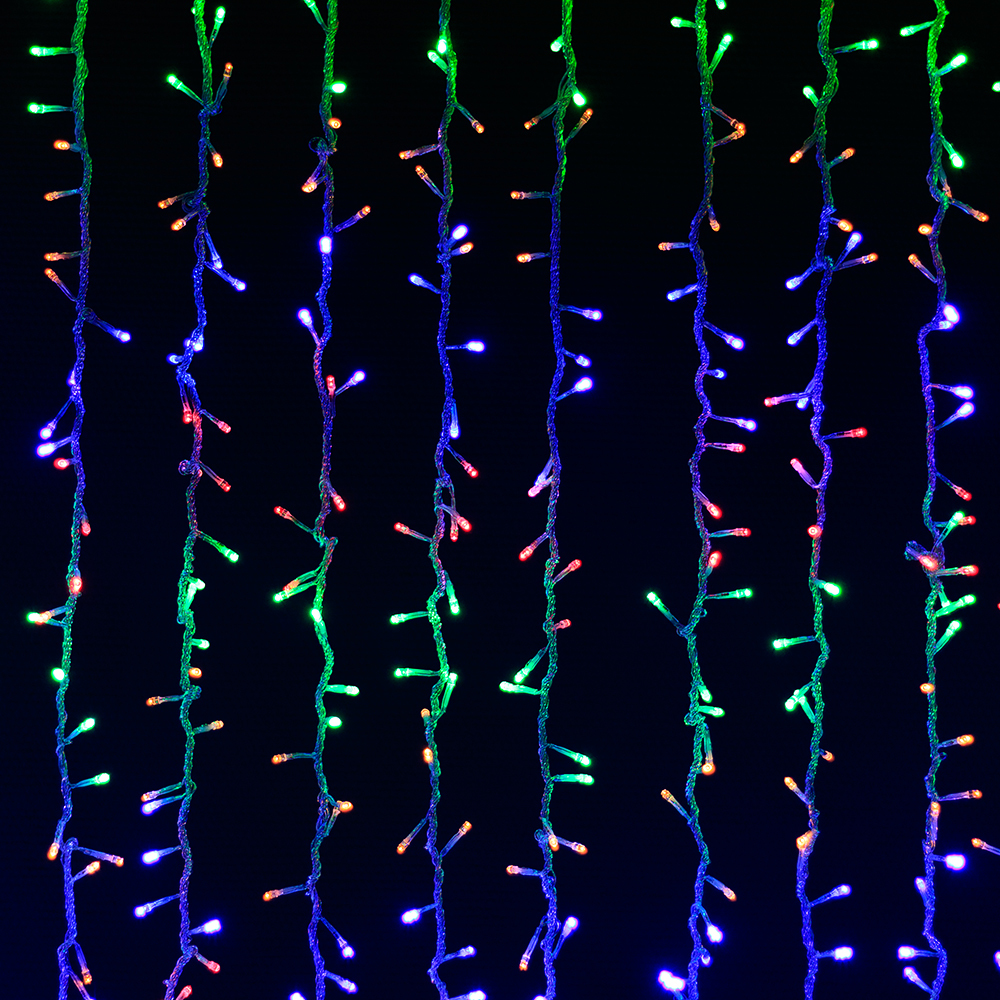 Светодиодная герметичная IP65 гирлянда "ВОДОПАД", RGB. Длина 3000мм, высота 2000мм, 3200шт светодиодов. Питание 220В, мощность 430Вт.Прозрачный провод с евровилкой.