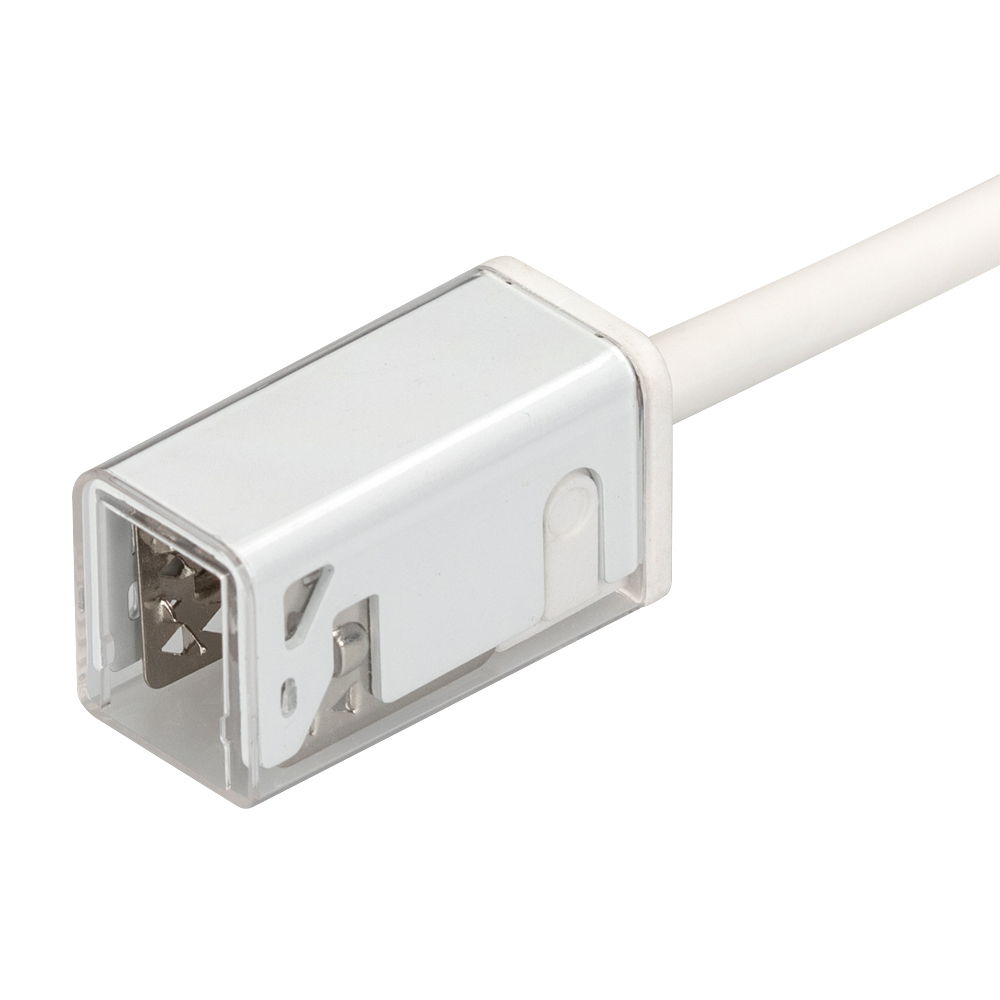 Герметичный коннектор питания для гибкого неона MOONLIGHT, сечение 17х12мм, цвет белый. Горизонтальный вывод провода. Подключение питания без пайки, IP67, длина провода питания 500мм.