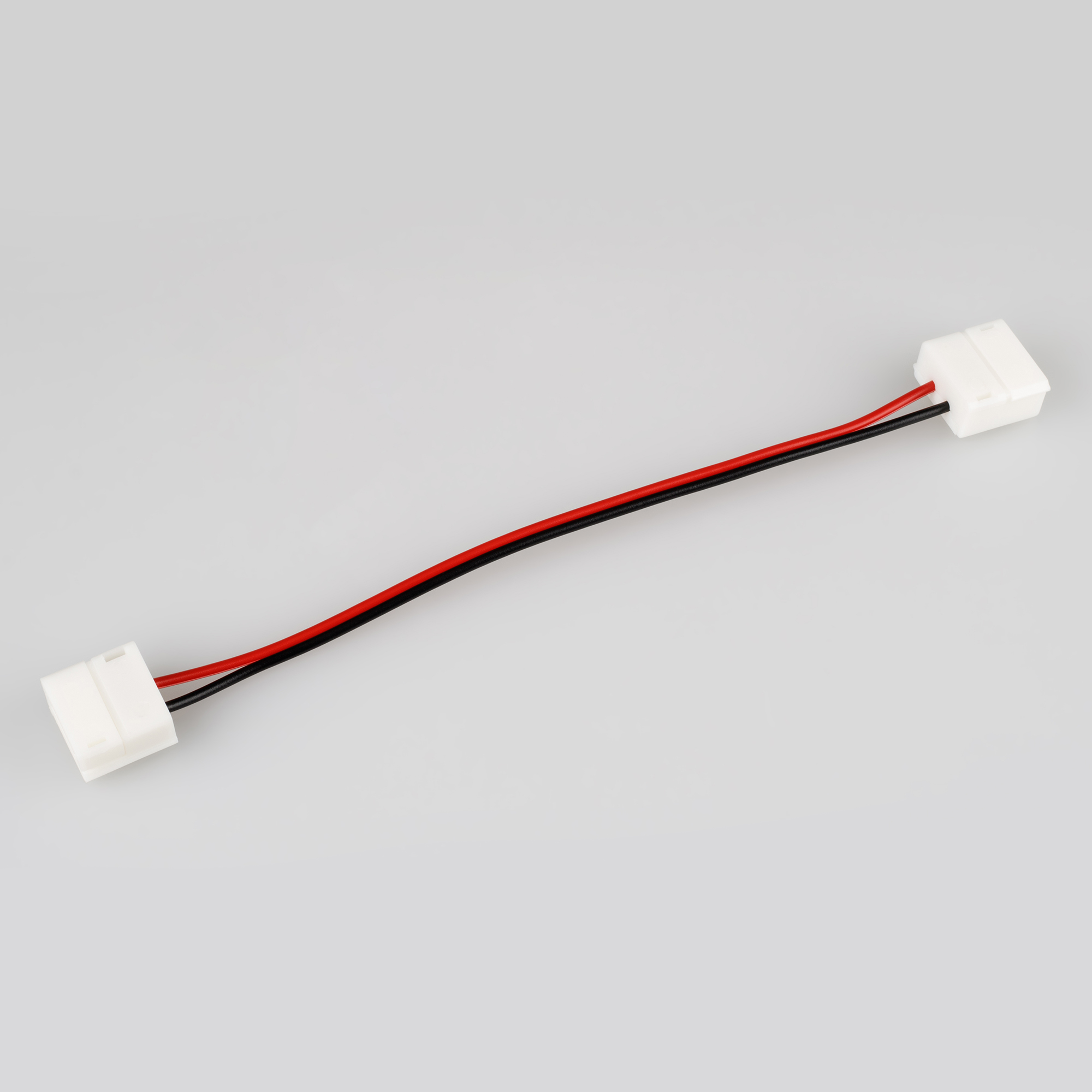 Двойной коннектор с проводом 15см для соединения 2-х отрезков ГЕРМЕТИЧНЫХ светодиодных одноцветных лент шириной 10мм. Материал - пластик. Максимальный допустимый ток 3А, напряжение до 50 В. Цена за 1шт.