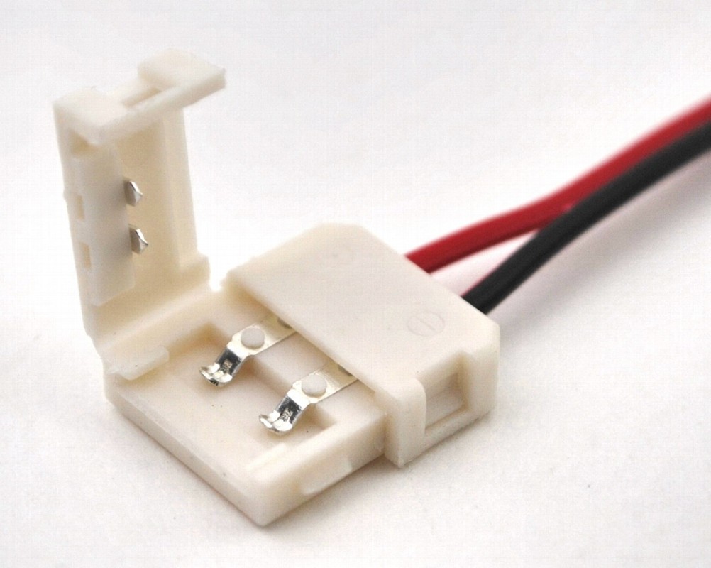 Коннектор с проводом для соединения 2х лент шириной 8мм без пайки. Коннектор можно разрезать пополам и получить 2 коннектора для подключения ленты к блоку. Максимальный ток 6А. Мощность при 12В = 72Вт, при 24В = 144Вт.