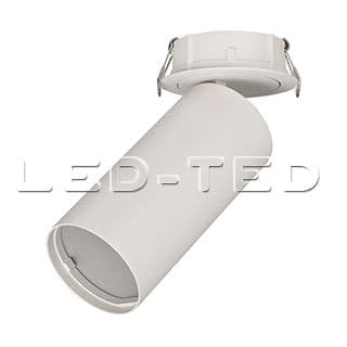 Светодиодные светильники. Корпус встраиваемый откидной для светильника POLO-R65 (1 часть из 3). Материал корпуса белый алюминий. Размер DxH 65x165мм, встроенный драйвер PRI:220-240VAC, SEC:DC 200mA 30-43V, 8Вт. Установка в отверстие 75мм.