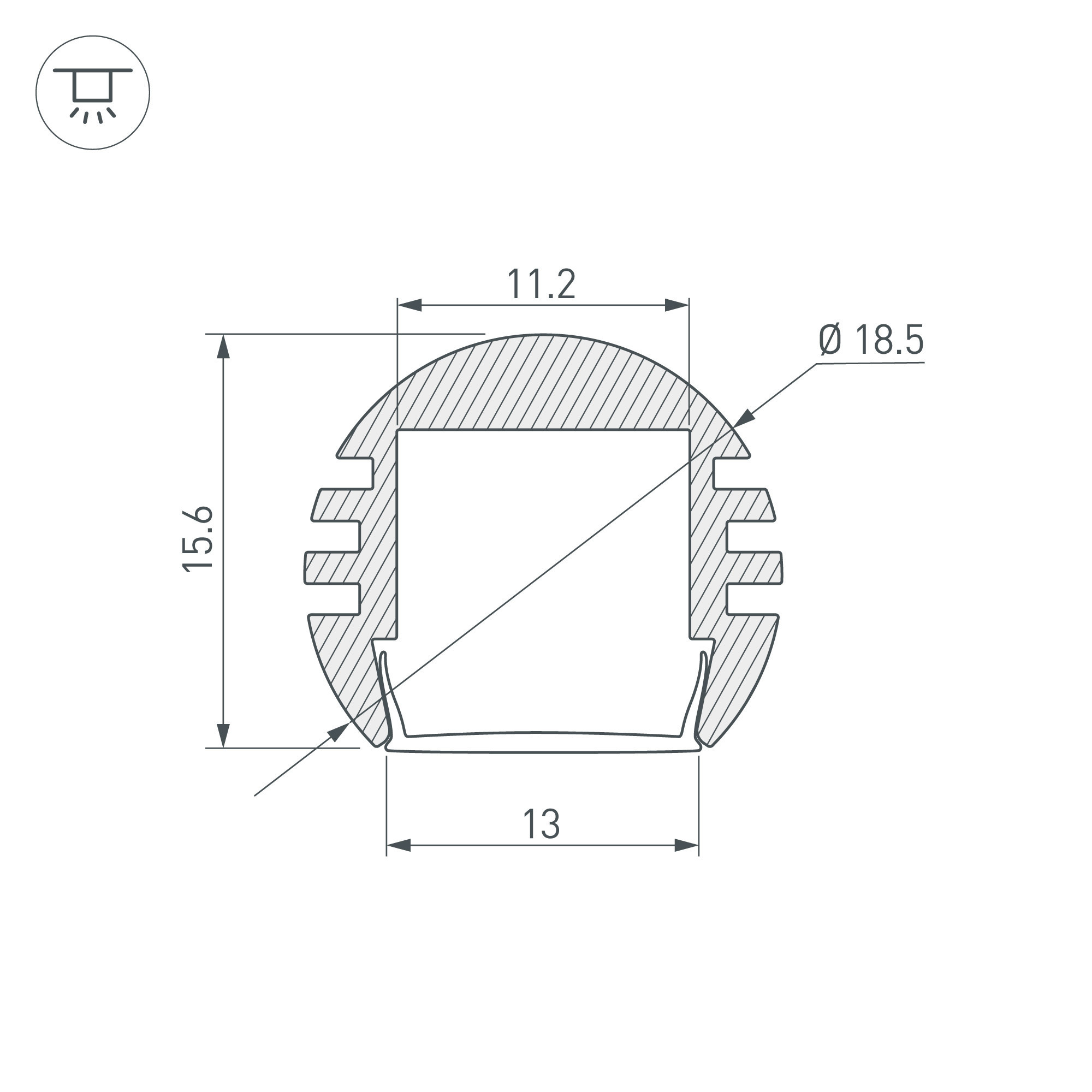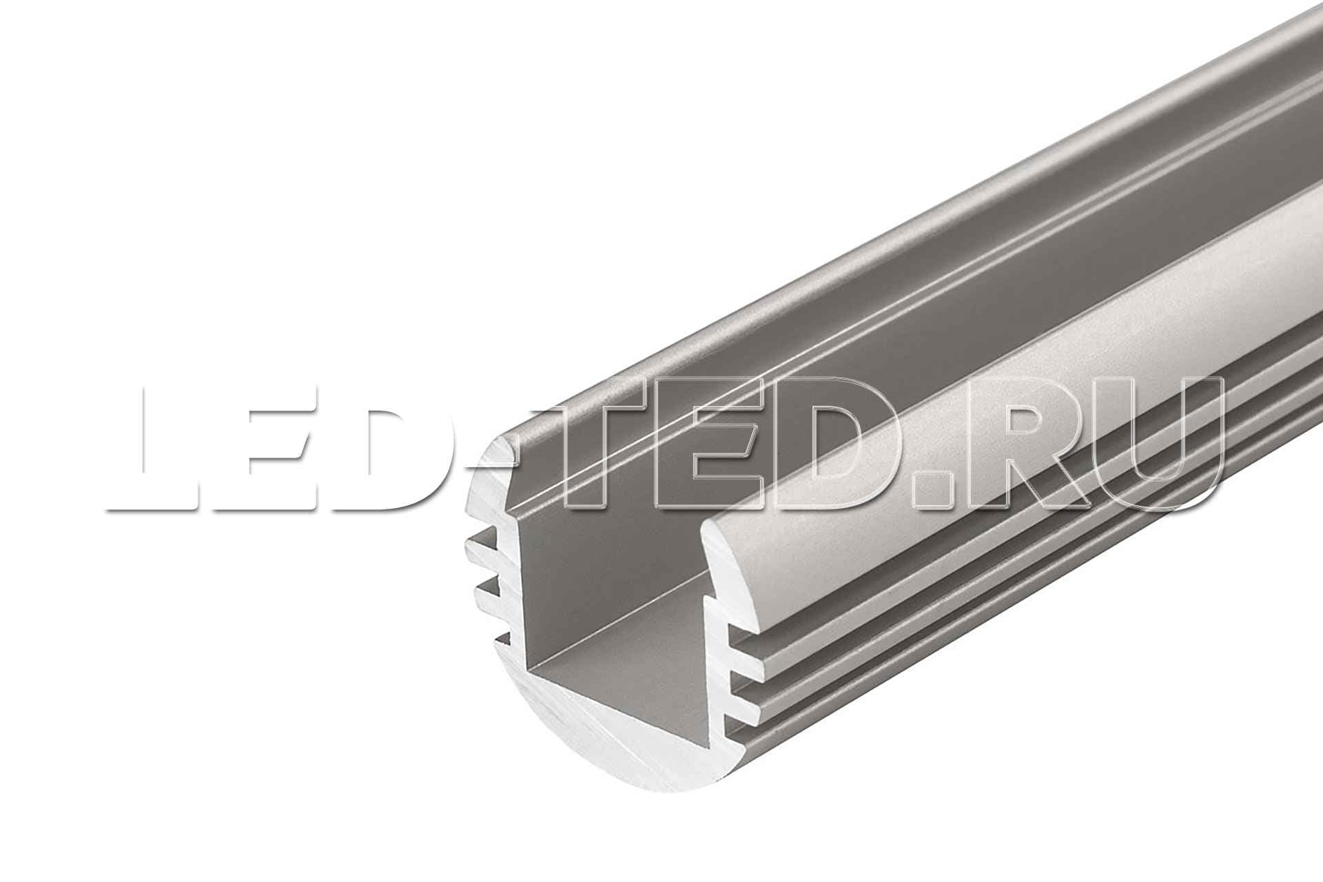 Алюминиевый анодированный закругленный профиль, без экрана, для светодиодной ленты, линейки. Может использоваться с матовым или прозрачным экраном (рассеивателем), держателями и заглушками. Размер 2000х18.5х15.6мм 012093