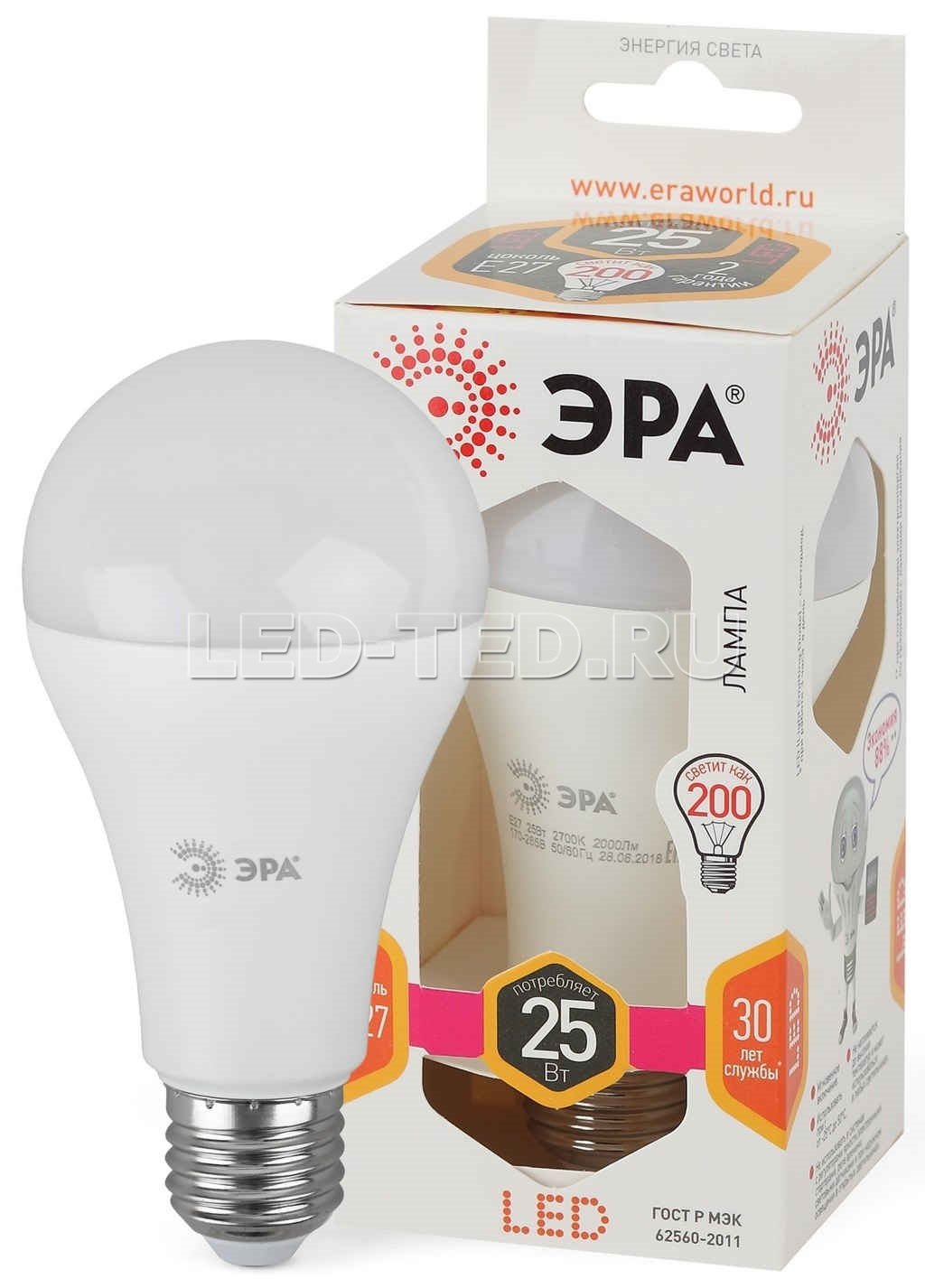 Светодиодная лампа стандартной серии. Совместима с выключателями с подсветкой.2 года 30 000 часов 2700K - 25..+50°C 170-265V