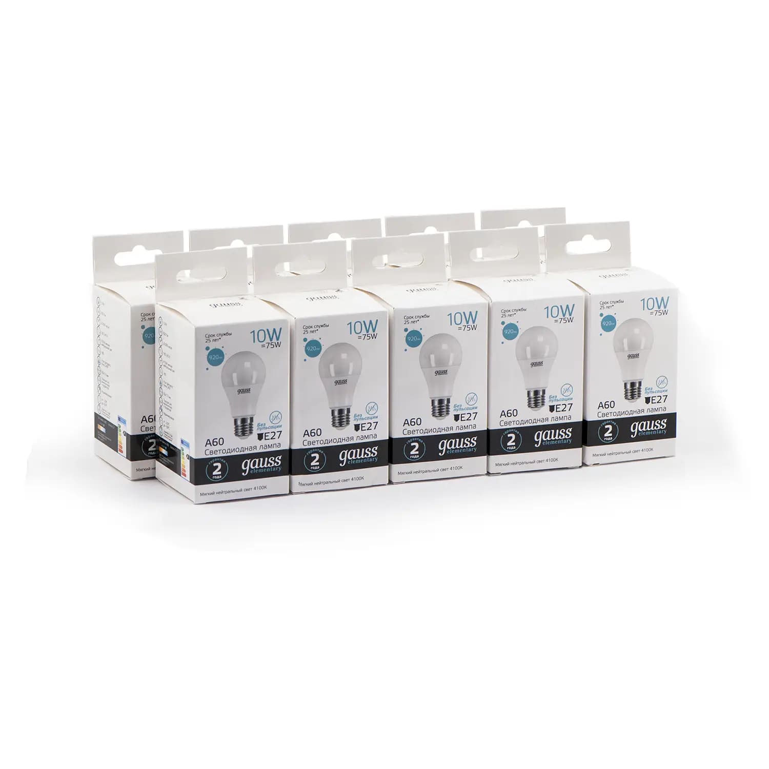 Мощность: 10 Вт / Аналог лампы накаливания: 75 Вт / Напряжение: 180-240 В / Световой поток: 920 Лм / Цветовая температура: 4100 К / Индекс цветопередачи (Ra): 80-89 / Угол светового пучка: 240°