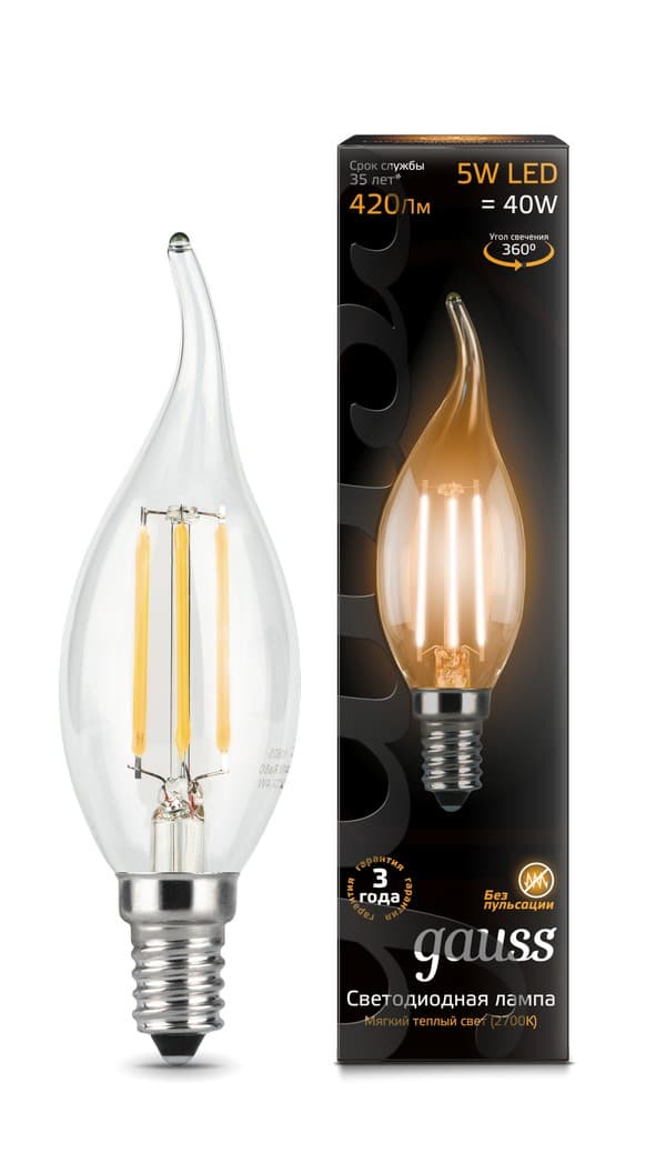 —Лампа Gauss LED Filament Candle tailed E14 5W 2700K 1/10/50