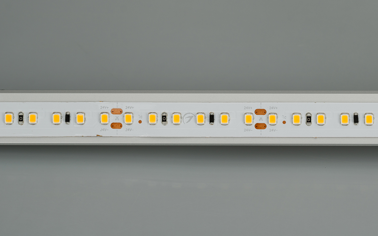 Рулон 20м стабилизированная лента, светодиоды smd 2835, 120шт/м 2400шт на 20м, белая плата 12мм, скотч 3М. Цвет ТЁПЛЫЙ 2600-2800K. Угол 120°, цветопередача CRI>85. Питание 24V, мощность 9.6 Вт/м 192 Вт на 20м. Размеры 20000х12х1.5мм. Мин.отрезок 50мм, 6 светодиодов. Цена за 1м. 024593