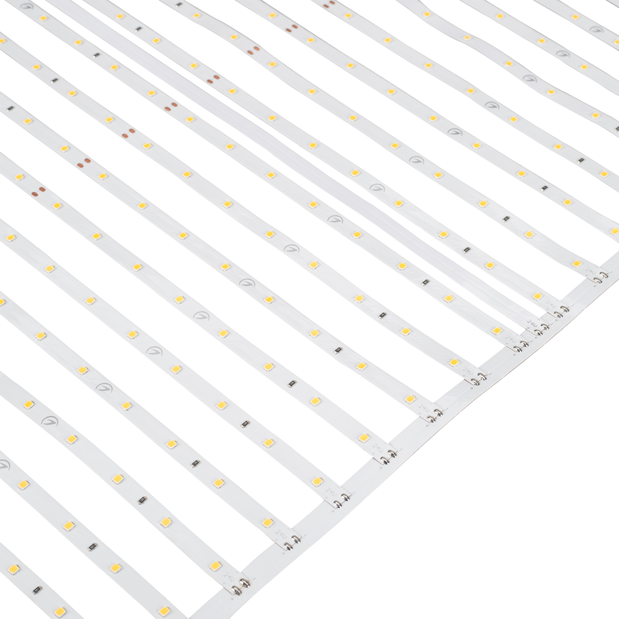Светодиодная лента-сеть из шести сегментов по 20 линий, соединенных между собой платой-проводником длиной 500 мм, расстояние между центрами соседних линий 25мм, общая длина сети 3000 мм, светодиоды smd 2835, 640 шт/м (1920шт на 3м), белая плата 8мм, скотч 3М. Цвет ТЕПЛЫЙ 2700-3200K Напряжение питания 24В, мощность 43,6 Вт/м (130,8 Вт на 3м), угол 120° CRI>85 Световая эффективность 150 лм/Вт. Шаг резки 500 мм. Размеры сегмента 500х410х0,88 мм. (320 светодиодов) Размер ленты-сети 3000х410х0,88 мм. Дополнительный теплоотвод не обязателен.