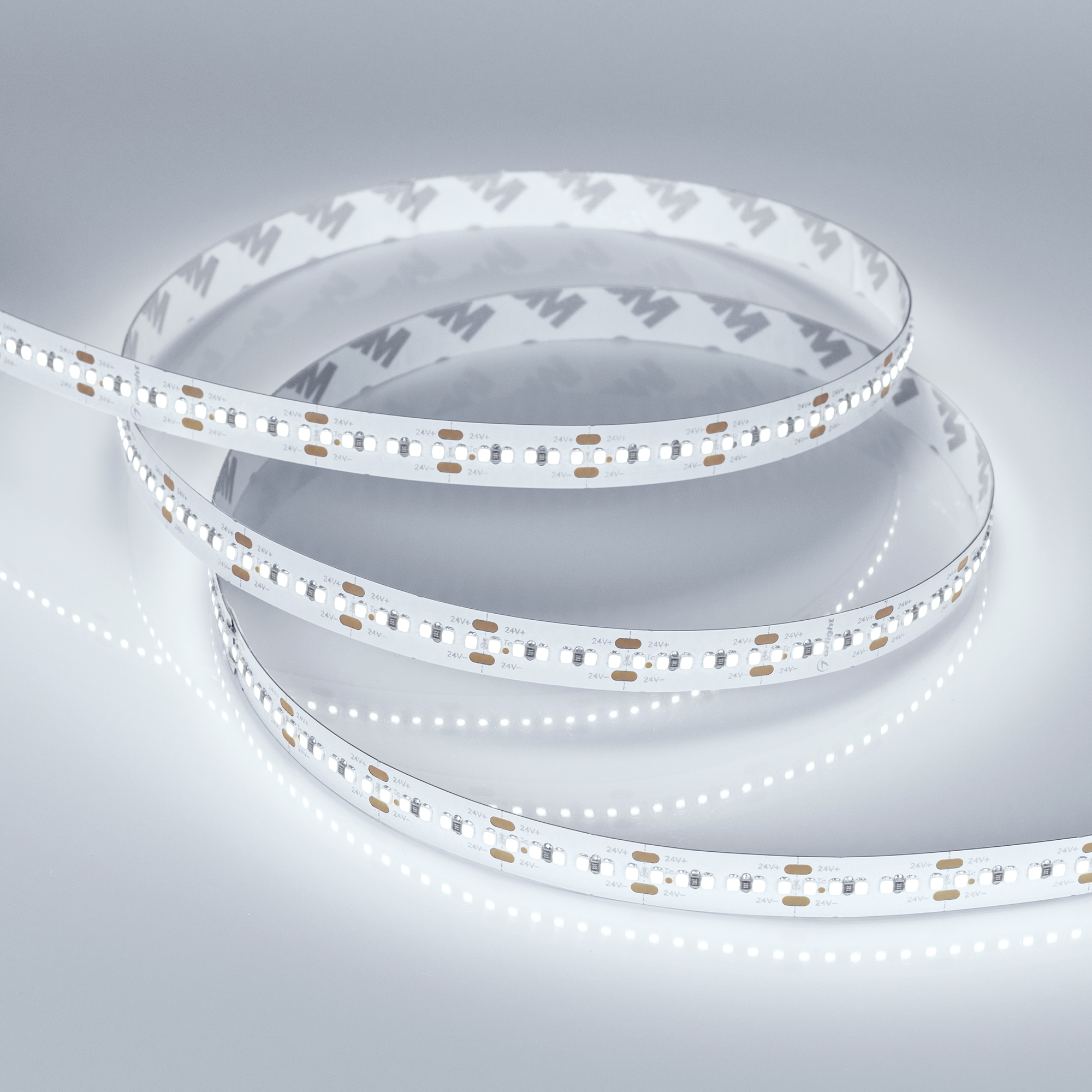 Мощная светодиодная лента с микродиодами smd 2216, 300шт/м 1500шт на 5м, белая плата 10мм, скотч 3М. Цвет БЕЛЫЙ 5500-6000К. Питание 24V, мощность 21,6 Вт/м 108 Вт на 5м, угол 120°, высокая цветопередача CRI>90. Размеры 5000x10х1.3мм. Длина подключения не более 2.5м. 023587