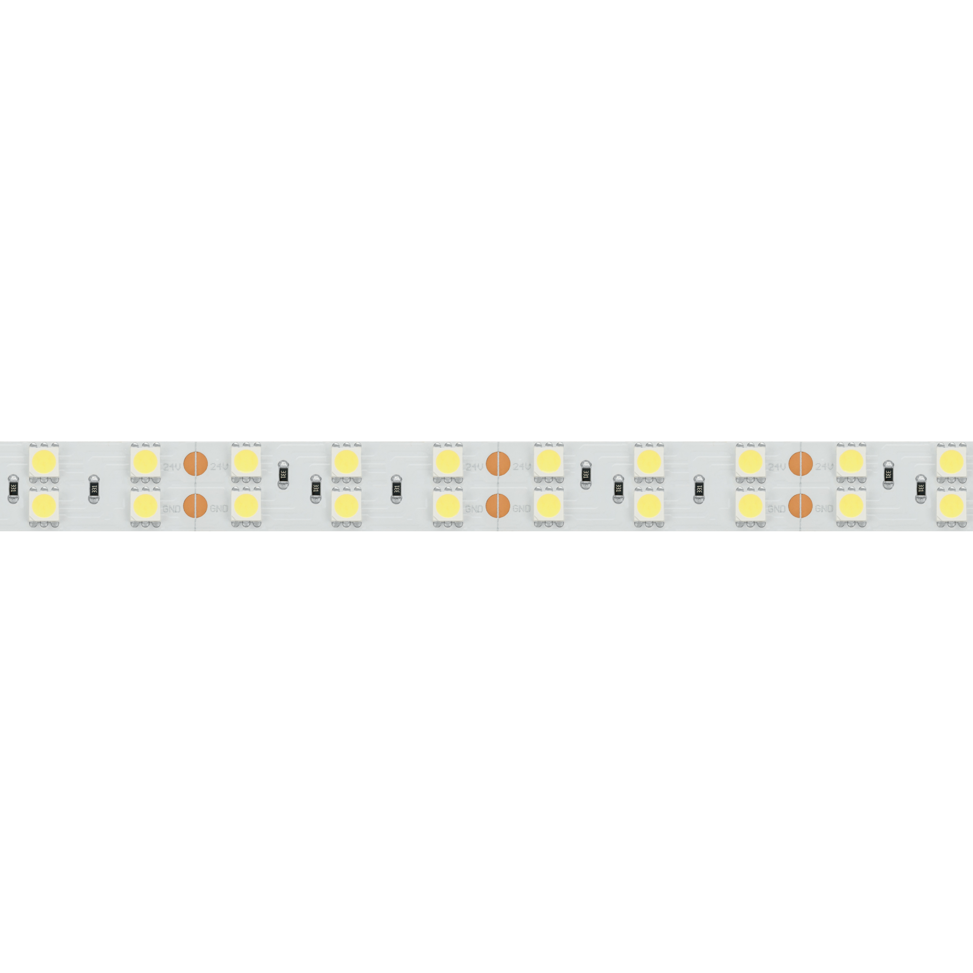 CRI98, гибкая лента LUX, 2 ряда светодиодов smd 5060, 120шт/м 600шт на 5м, белая плата 15мм, скотч 3М. Цвет БЕЛЫЙ ДНЕВНОЙ 4800-5200K. Питание 24V, мощность 28.8 Вт/м 144 Вт на 5м, угол 120°, очень высокая цветопередача CRI 95..98. Размеры 5000х15х2.2мм. Мин.отрезок 50мм, 6 светодиодов. Цена за 1м. 021468(1)