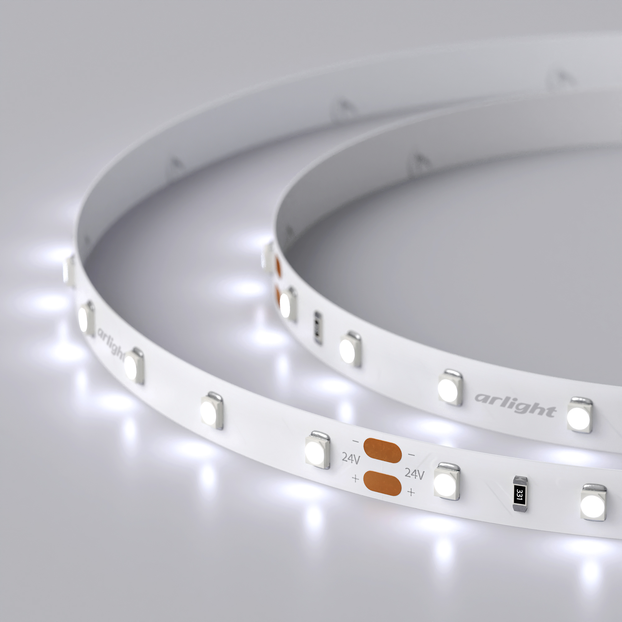 Гибкая лента LUX, светодиоды smd 3528, 60шт/м 300шт на 5м, белая плата 8мм, скотч 3М. Цвет ХОЛОДНЫЙ 7700-9600K. Питание 24V, мощность 4.8 Вт/м 24 Вт на 5м, угол 120°, цветопередача CRI>85. Размеры 5000х8x1.8мм. Мин.отрезок 100мм, 6шт светодиодов. Пакет 5м. Цена за 1м. 016147(1)