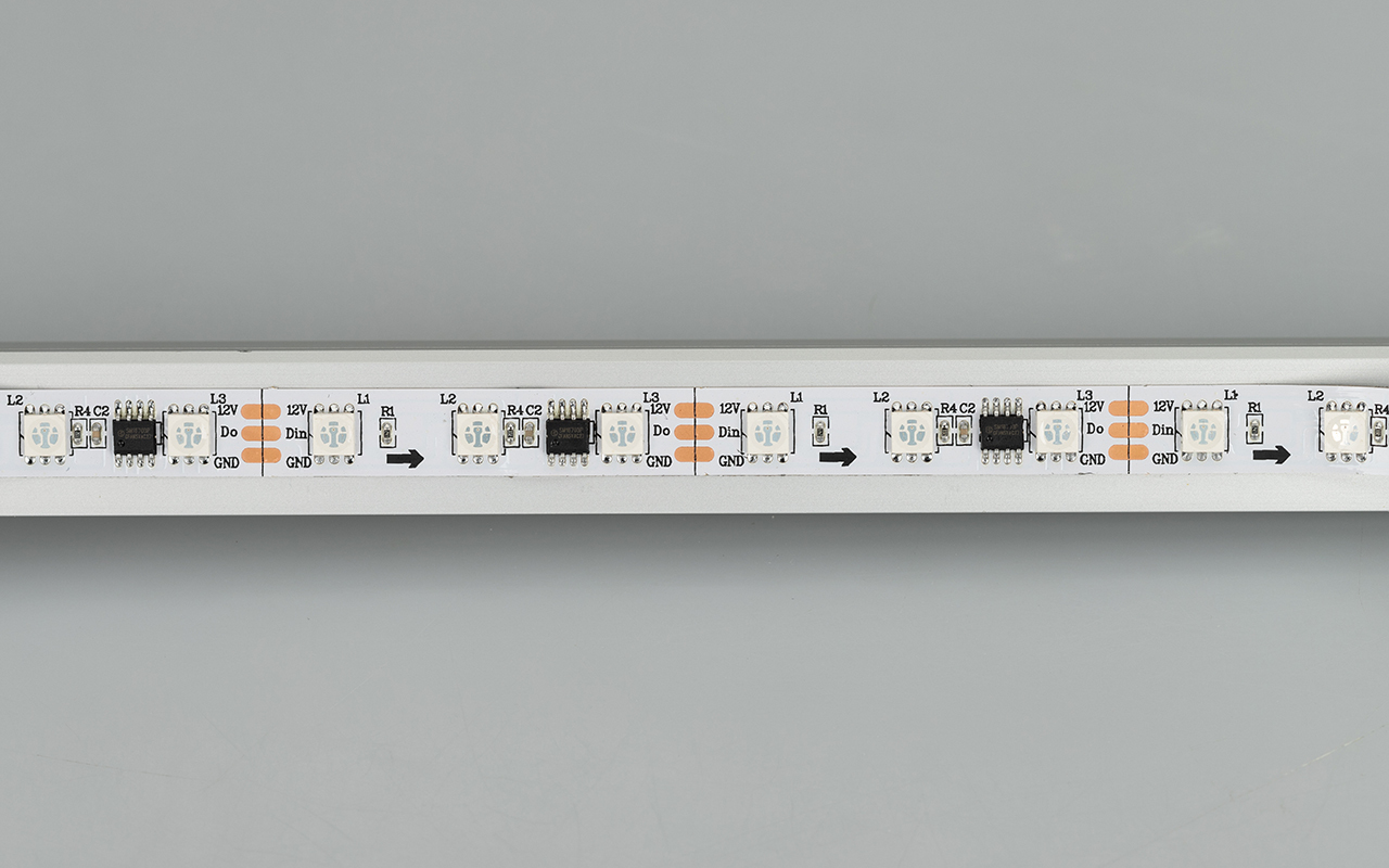 Открытая лента «Бегущие огни» IP20 с драйвером 16703. Рекоменд-ся подводка пит-я с 2 сторон ленты. Длина 5м, 300шт LED RGB 5060, 20 pixel/m 1 pixel = 3 LED. Управление от внешнего контроллера SPI, без авторежима. Питание 12V, макс. мощн-ть 14,4 Вт/м статический белый цвет. Ширина 10 мм. Негерметичные прямоугольные коннекторы. 026367(1)