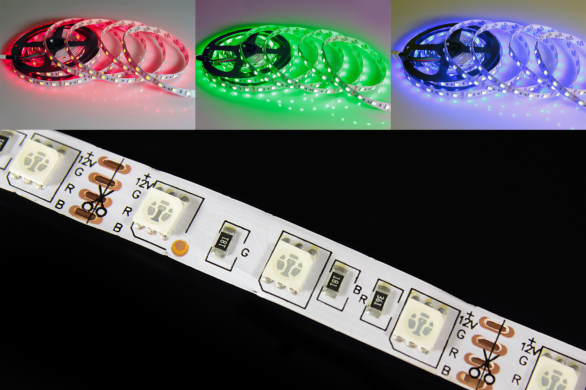 Лента SMD 5050, 60 LED, 12 В, 14.4 Вт, 18-20 лм, IP22, RGB, стандарт