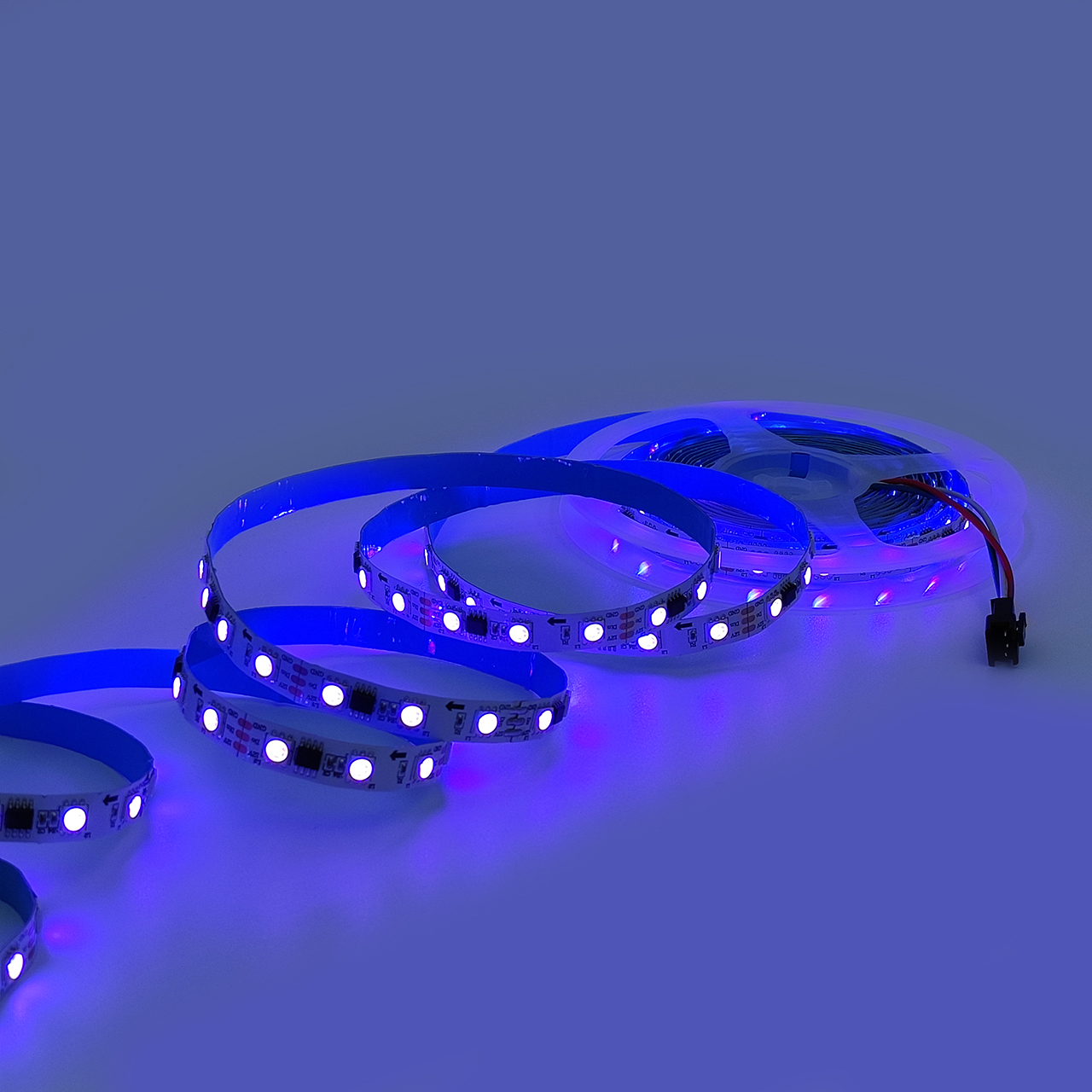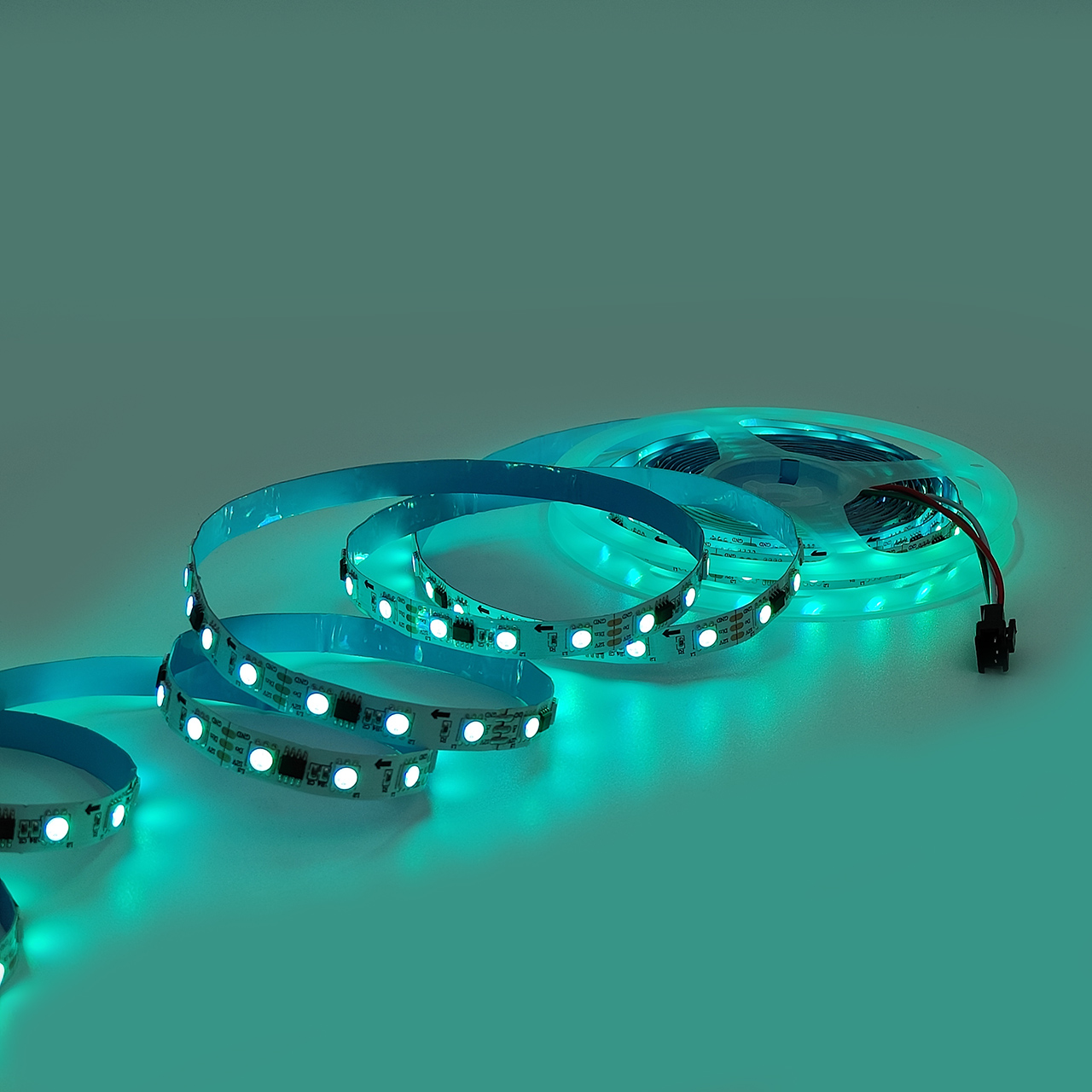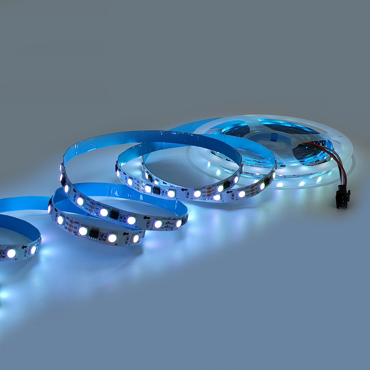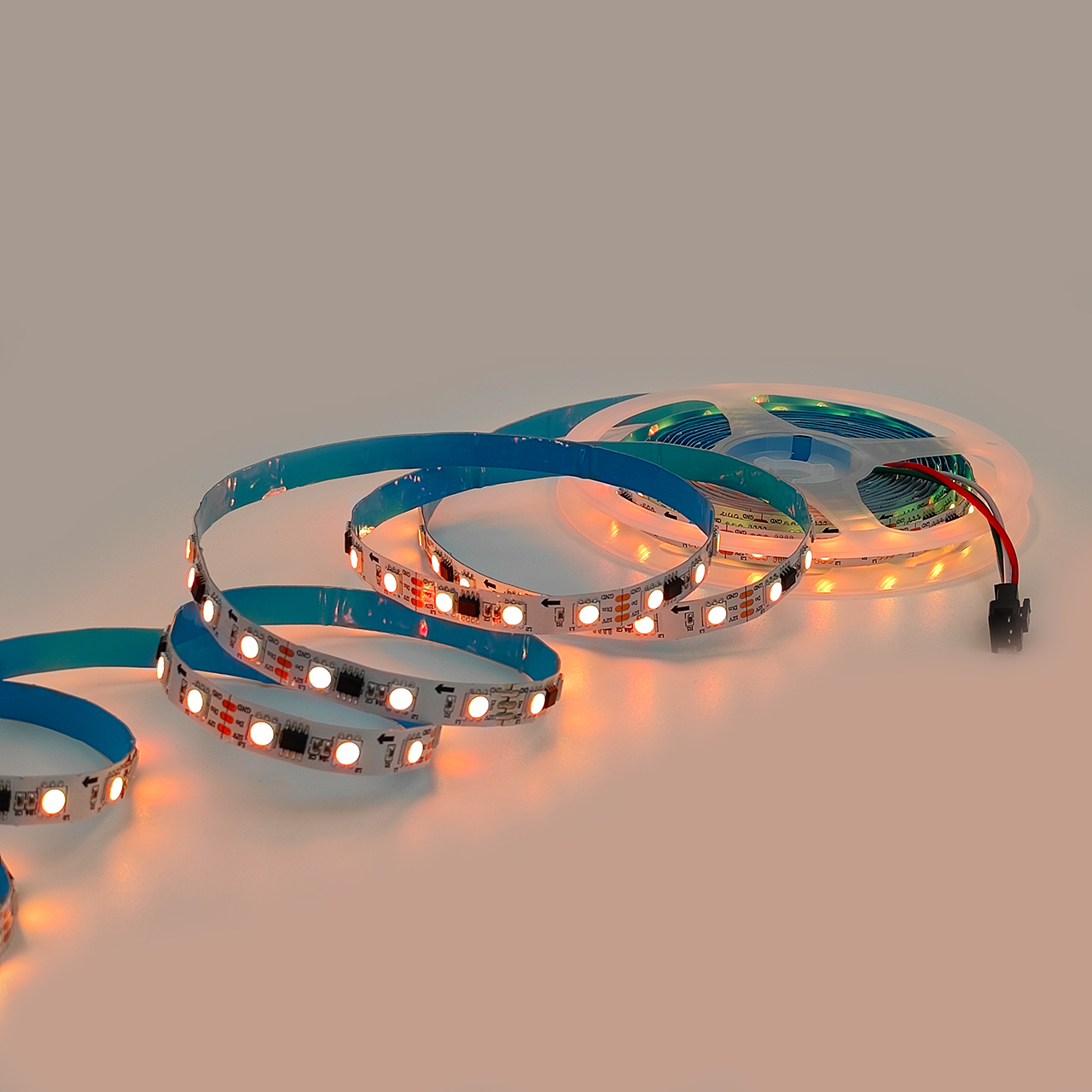 Светодиодная лента многоцветная RGB SPI "Бегущий огонь". Светодиоды SMD 5050 60 шт/м. Напряжение питания 12В, мощность 14.4 Вт/м. 1 пиксель - 3 светодиода. Простое подключение к контроллеру RG-KQ-06 SP611E.