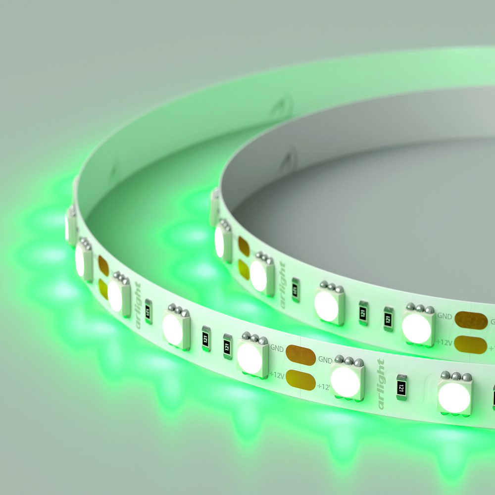Гибкая лента LUX, светодиоды smd 5060, 60шт/м (300шт на 5м), белая плата 10мм, скотч 3М. Цвет ЗЕЛЁНЫЙ. Питание 12V, мощность 14.4 Вт/м (72 Вт на 5м), угол 120°. Размеры 5000х10x2.2мм. Мин.отрезок 50мм, 3 светодиода. Цена за 1м.