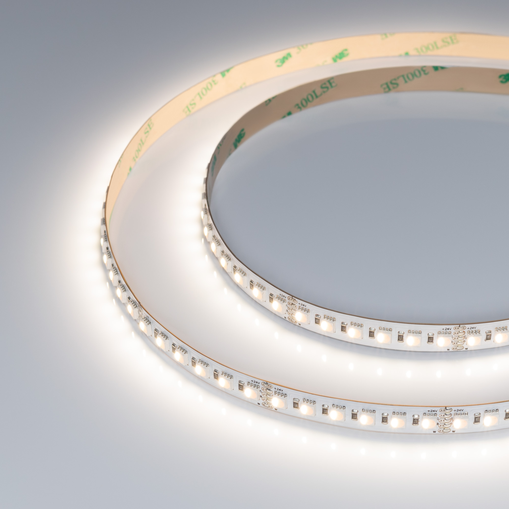 Светодиодная лента RT-H120, открытая. Светодиоды 4040, 120 шт/м (600 шт на 5 м), белая плата, ширина 10 мм, скотч 3M. Цвет RGB + Дневной 4000К, угол 120°. Питание 24V, мощность 25 Вт/м (125 Вт на 5 м). led-ted.ru Размеры 5000x10x2.1 мм. Мин. отрезок 50 мм, 6 светодиодов. Цена за 1 м.