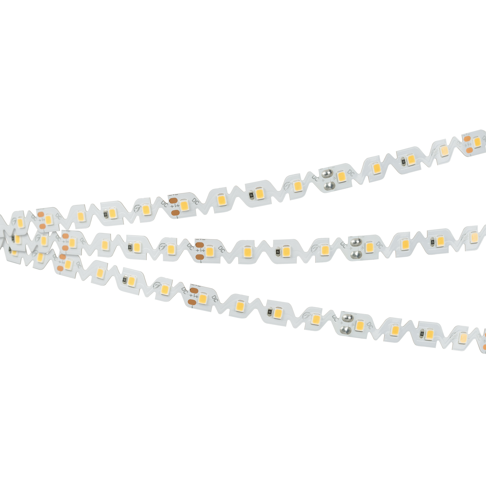 Гибкая лента с фигурной платой в форме волны, легко изгибается на плоскости. Светодиоды smd 2835, 80 шт/м (400 шт на 5 м), белая плата 8мм, скотч 3М. Цвет ТЕПЛЫЙ 2700 K. Питание 24 В, мощность 8 Вт/м (40 Вт на 5 м), угол 120°, цветопередача CRI>90. Размеры 5000х8х1.2мм. Мин.отрезок 50мм, 4 светодиода. Цена за 1м.