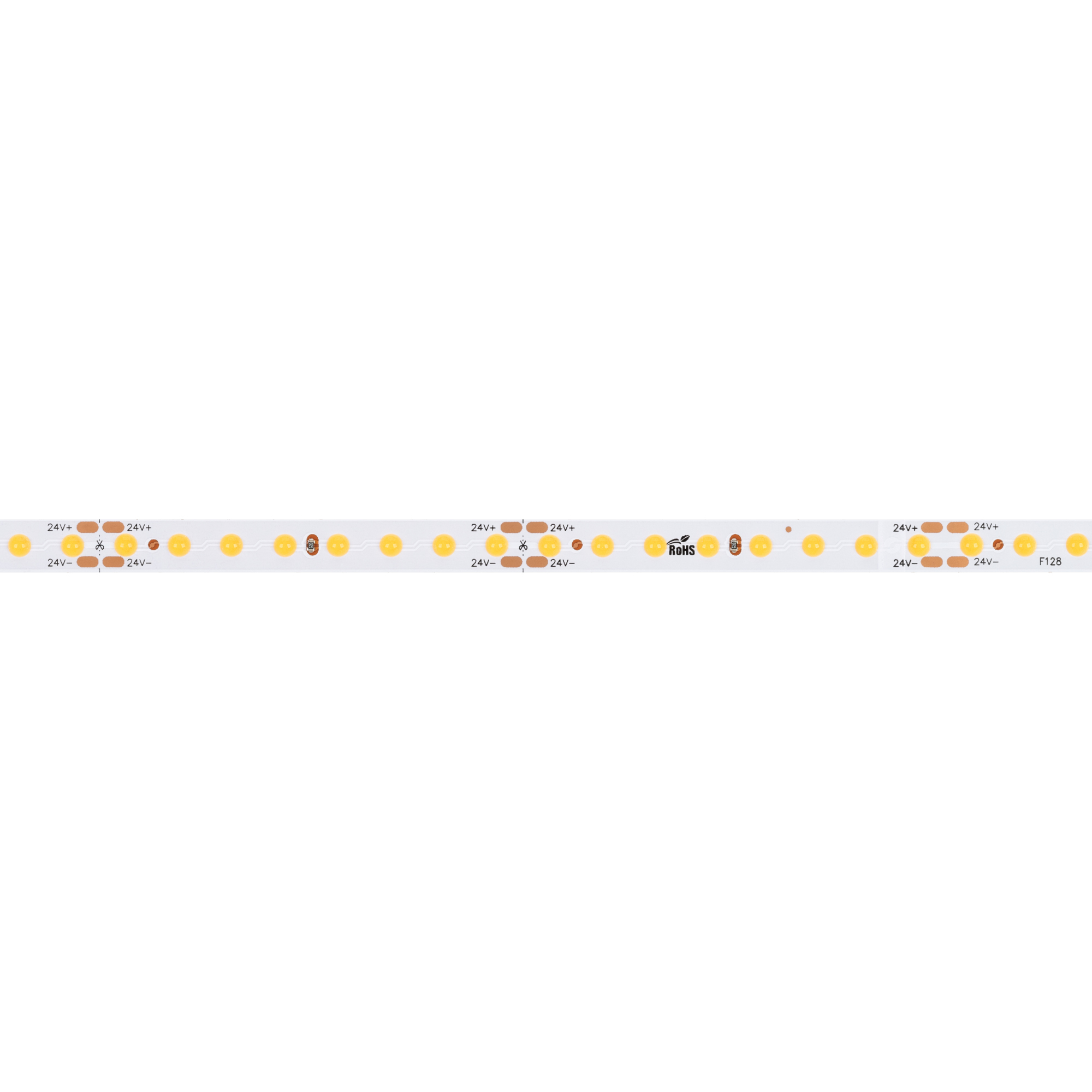 Лента COB с видимой световой точкой. Светодиод Point Light, 128 шт/м (640 шт на 5 м), белая плата, ширина 8 мм, скотч 3M. Цвет ТЕПЛЫЙ 3000 K, цветопередача CRI>80, угол 160°. Питание 24 В, мощность 9.6 Вт/м (48 Вт на 5 м). Размеры 5000x8x1.2 мм. Мин. отрезок 62.5 мм, 8 светодиодов. Цена за 1 м.
