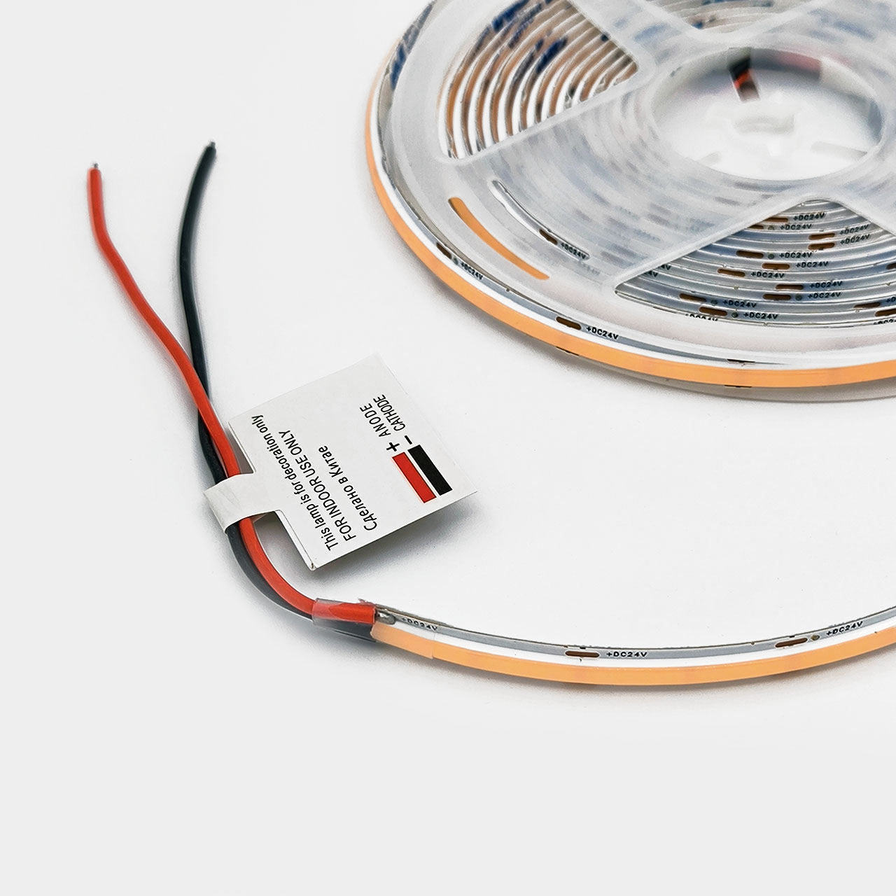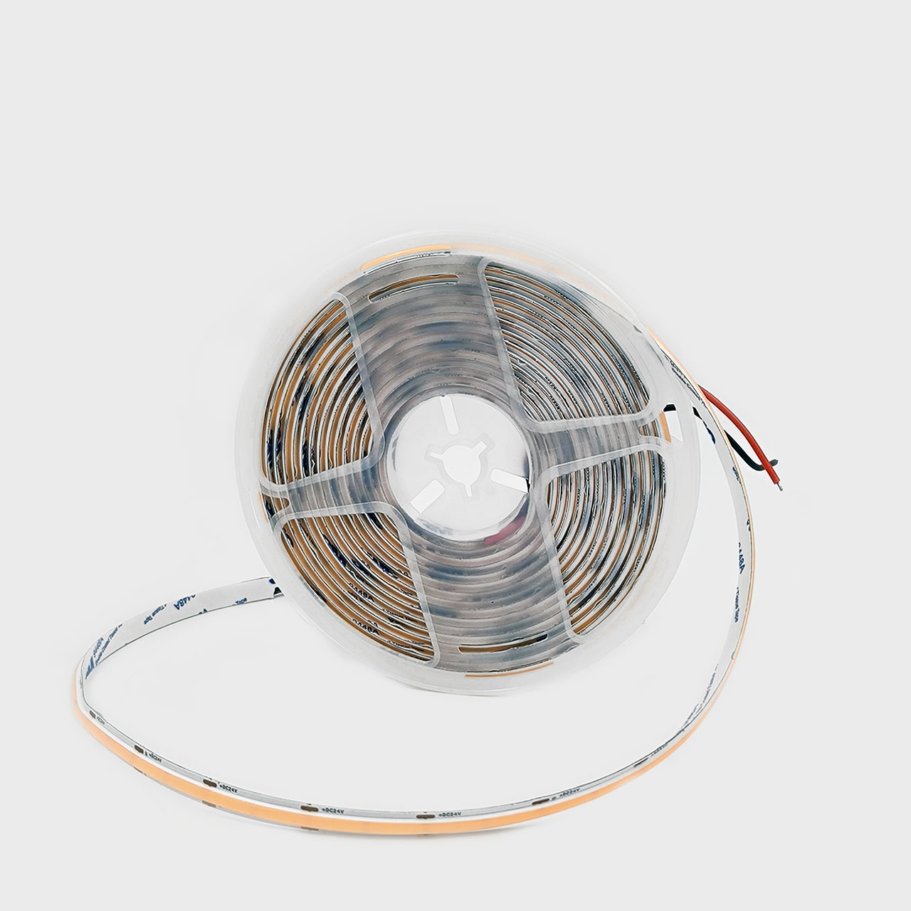 Светодиодная лента: цвет свечения: теплый, цветовая температура: 3000K, светодиоды: 300Св/м COB CSP, мощность: 14Вт/м, напряжение: 24В, яркость: 1250лм/м, ширина платы: 8мм, длина ленты в упаковке 5м. Внимание!!! Установка только на алюминиевый профиль для охлаждения.