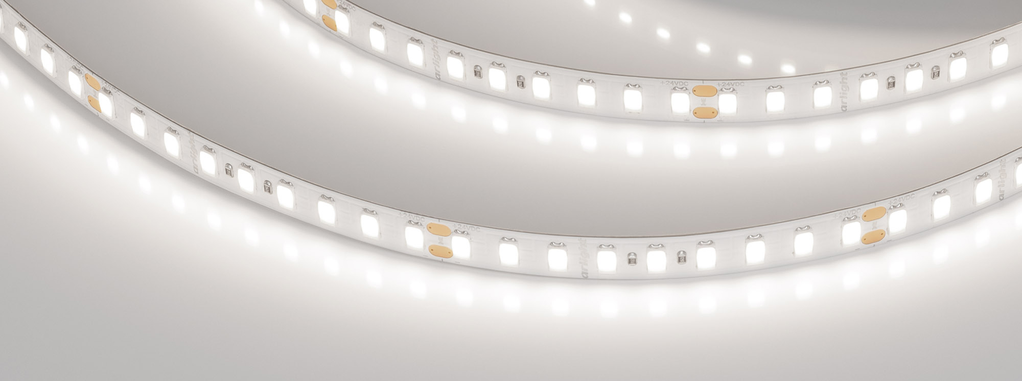 Светодиодная лента ULTRA-C126, открытая IP20. Светодиоды 5630, 126 шт/м (630 шт на 5 м), белая плата, ширина 10 мм, скотч 3M. Цвет ДНЕВНОЙ 5000 K, цветопередача CRI>80, угол 120°. Питание 24 В, мощность 14.4 Вт/м (72 Вт на 5 м). Размеры 5000x10x1.4 мм. Мин. отрезок 71.4 мм, 9 светодиодов. Цена за 1 м.