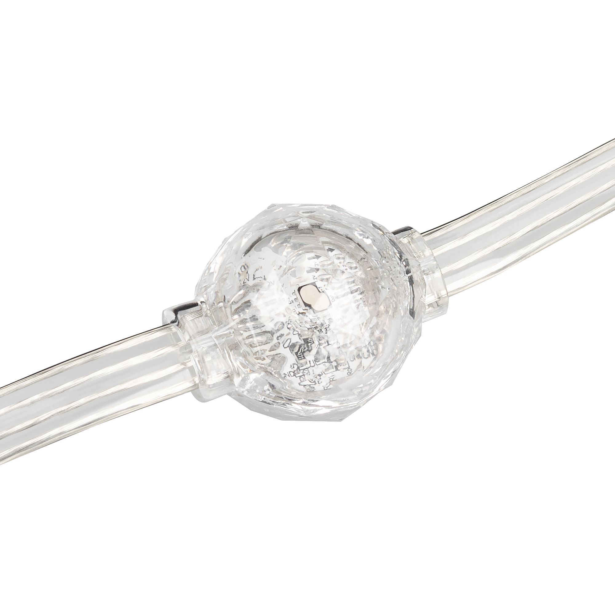 Светодиоды и Модули. Управляемый светодиодный модуль SPI, RGB, микросхема UCS 5603, напряжение 12 В, мощность 0.72 Вт, 3 светодиода SMD 3535, угол 360°. Создание 3D эффектов с помощью программы Madrix. 80 шт на проводе, расстояние между центрами модулей 100 мм. IP 67. Размер 2328 мм. Гарантия 3 года.