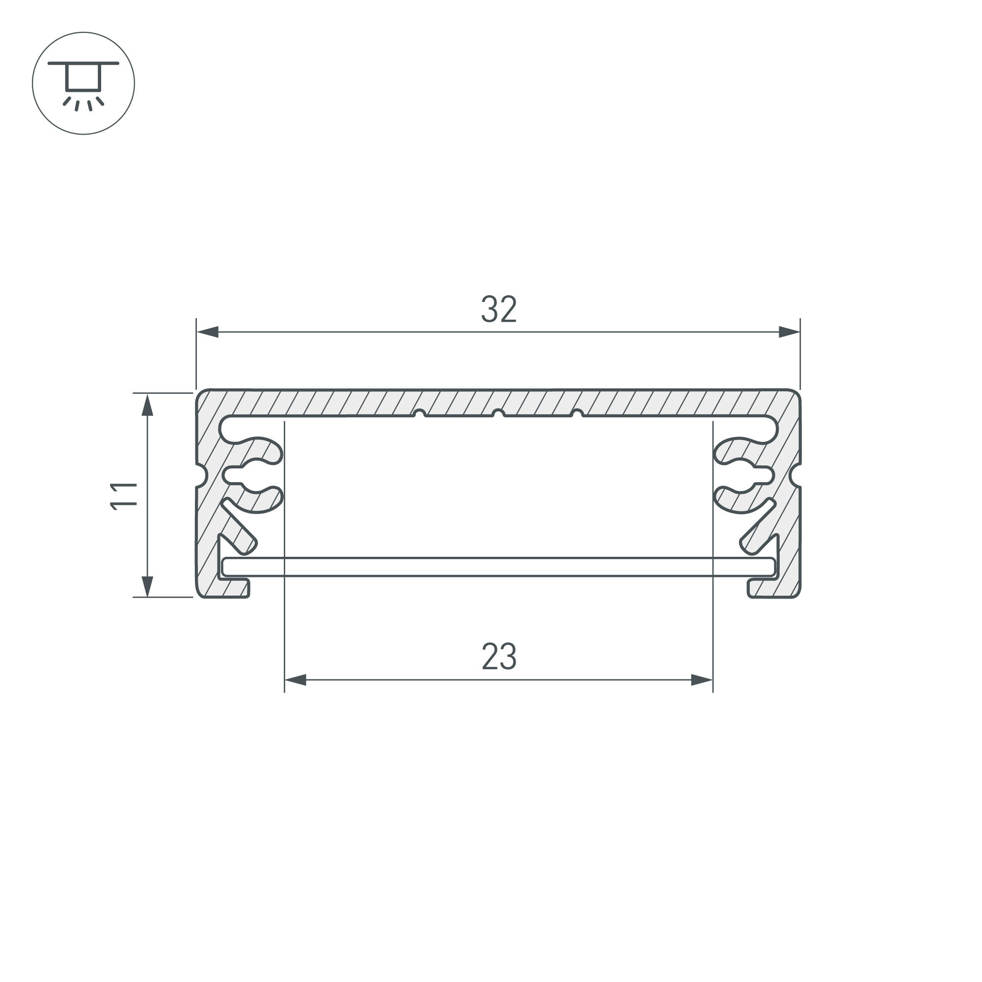 Хорошо подходит для кухонных светильников и для получения контурных эффектов. Размеры 2000х32х11мм. Неанодированный. 016983