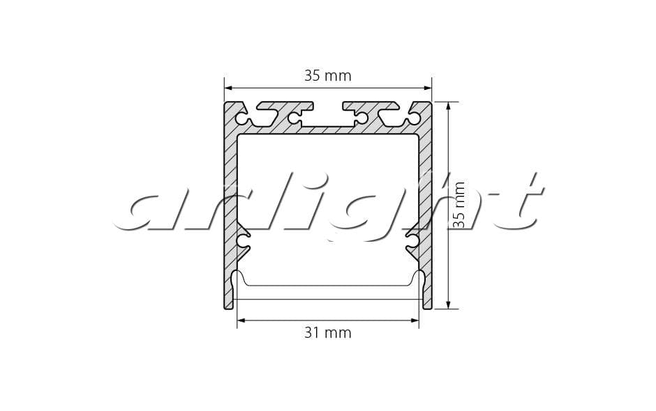 Комплект с экраном. Алюминиевый анодированный профиль для светодиодных лент и линеек. Габаритные размеры (L×W×H): 2500x35x35 мм. Ширина площадки для ленты 31 мм. Аксессуары приобретаются отдельно. Цена за комплект.