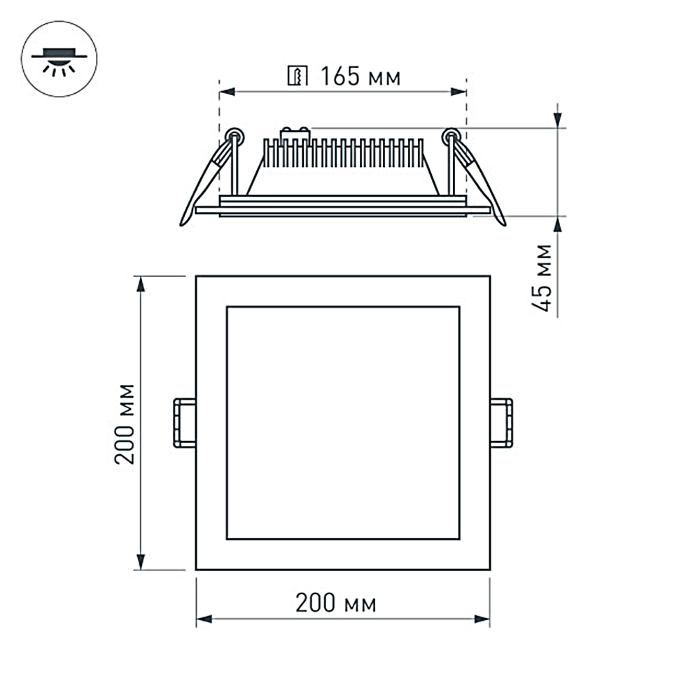16Вт / ДНЕВНОЙ 4000-4500K / 1250лм / 120°. Размер 200x200x45мм (в отверстие 165x165мм). Стеклянная панель. Корпус квадратный, белый. Питание от сети 220VAC, драйвер в комлекте 300mA 45-65V. Диапазон рабочих температур -10°..+40°C. Для помещений.