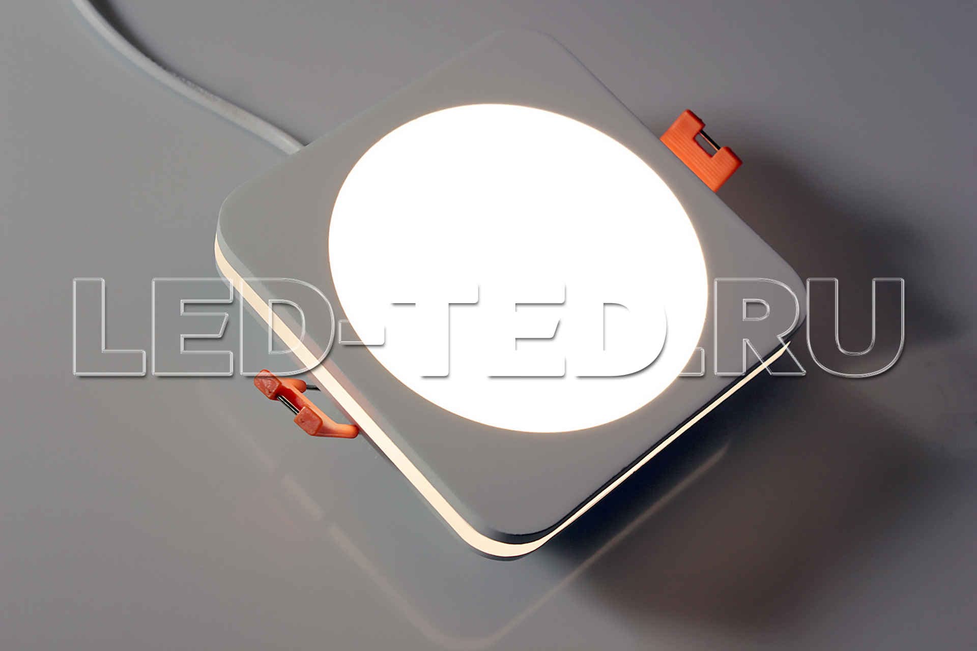 Квадратный светильник с контурным свечением.Корпус IP44 белый + вставка поликарбонат PC. Цвет ДНЕВНОЙ 4000К, св.поток 700 лм, угол 120°+180°. Питание 180-240VAC (драйвер в к-те 300mA 20-40V), мощность 10Вт. Размеры 96х96х42 мм, установка в отв.80х80 мм, высота мин.40 мм.