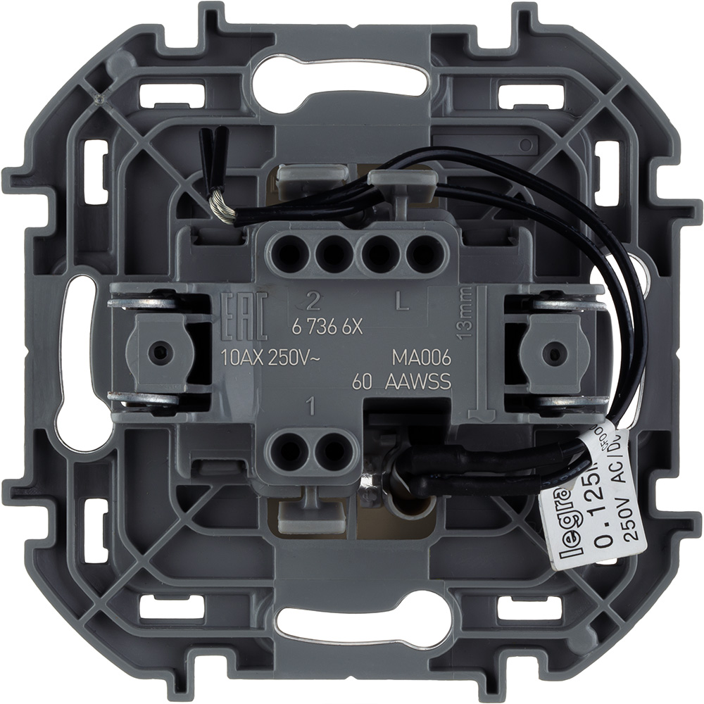 - Благодаря свободной схеме подключения, лампа подсветки либо облегчает ориентирование в темноте, либо информирует о включении нагрузки.