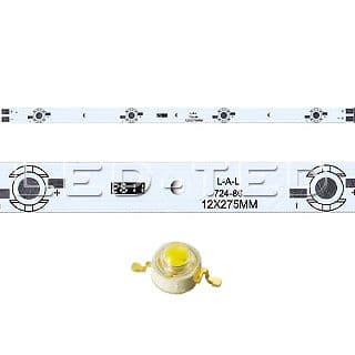 Алюминиевая плата. Размеры 275х12 мм. Цвет белый. Для 4-х (подключение 4S, последовательно) мощных светодиодов Emitter. Под линзы Н1, Н2.