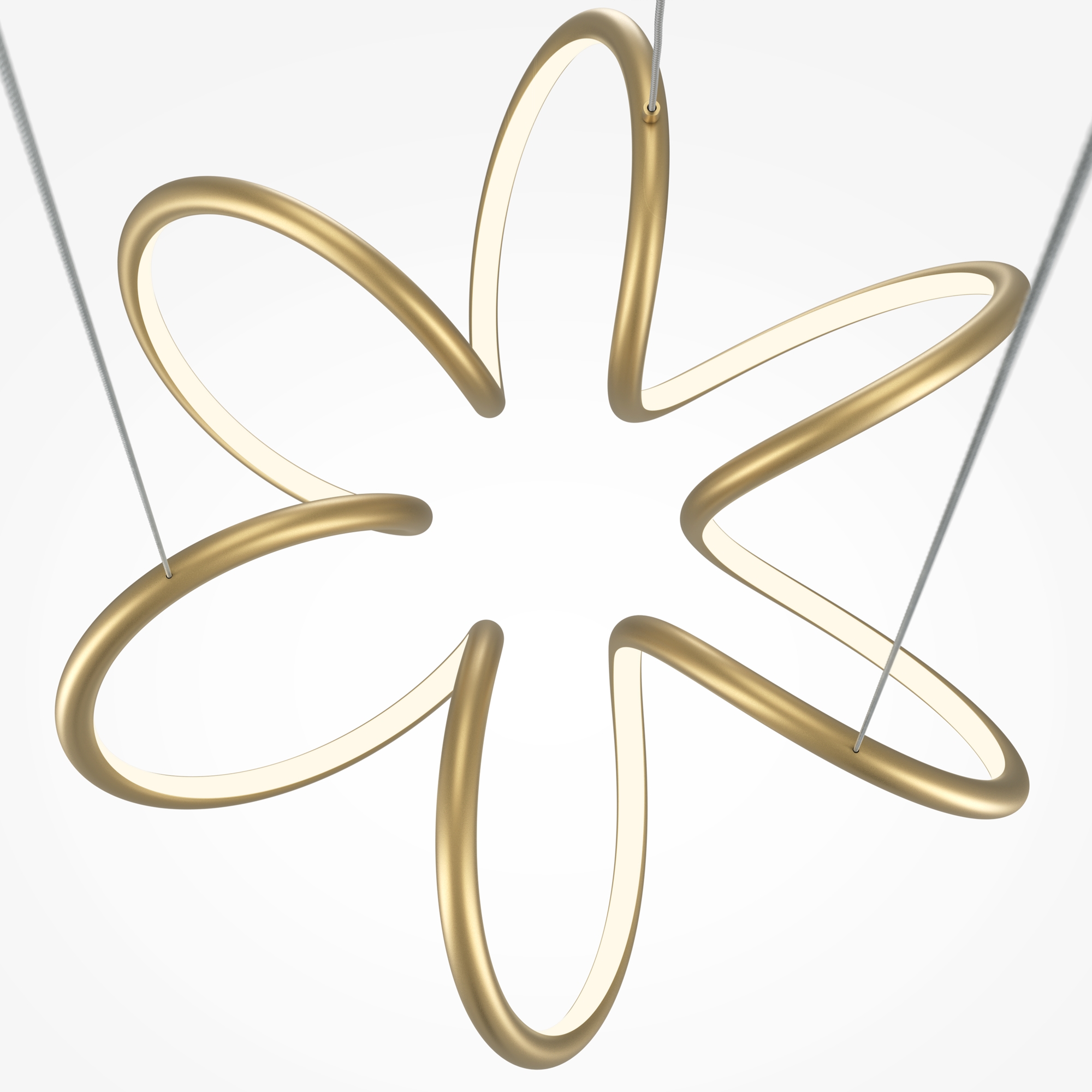 Металлическая арматура, цвета - черный, латунь. Закругленные световые элементыиз силикона со  встроенным LED-источником света по всему периметру. Регулируемый диапазон цветовой тмепературы 2600К-3500К для светильников в латуни и 3000К-4000К для черных. Регулируема длина тросов.  Фантазийный образ хаотичных фрагментов свободно парящих в пространстве.