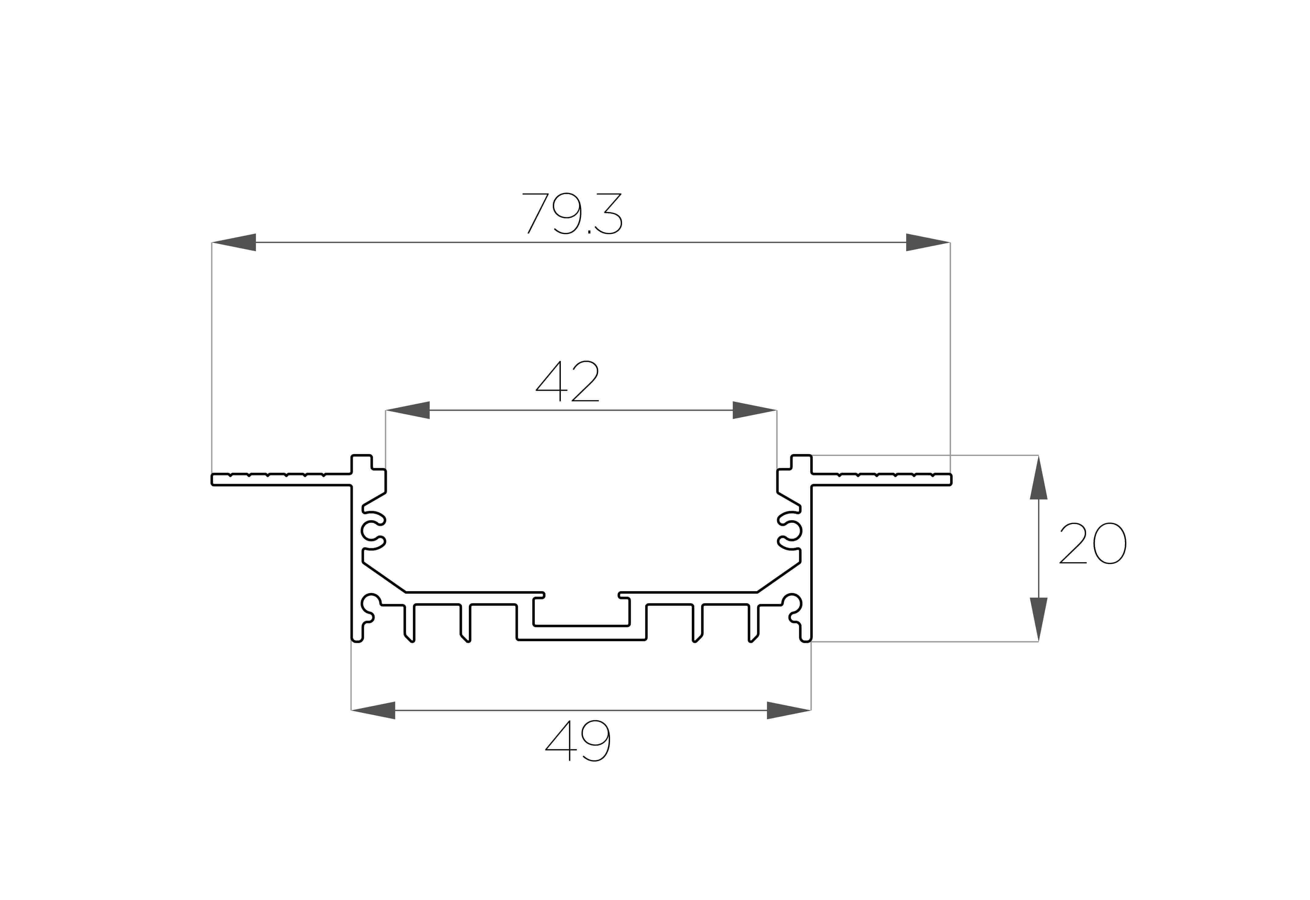 Габаритный размер: 2000x80x20