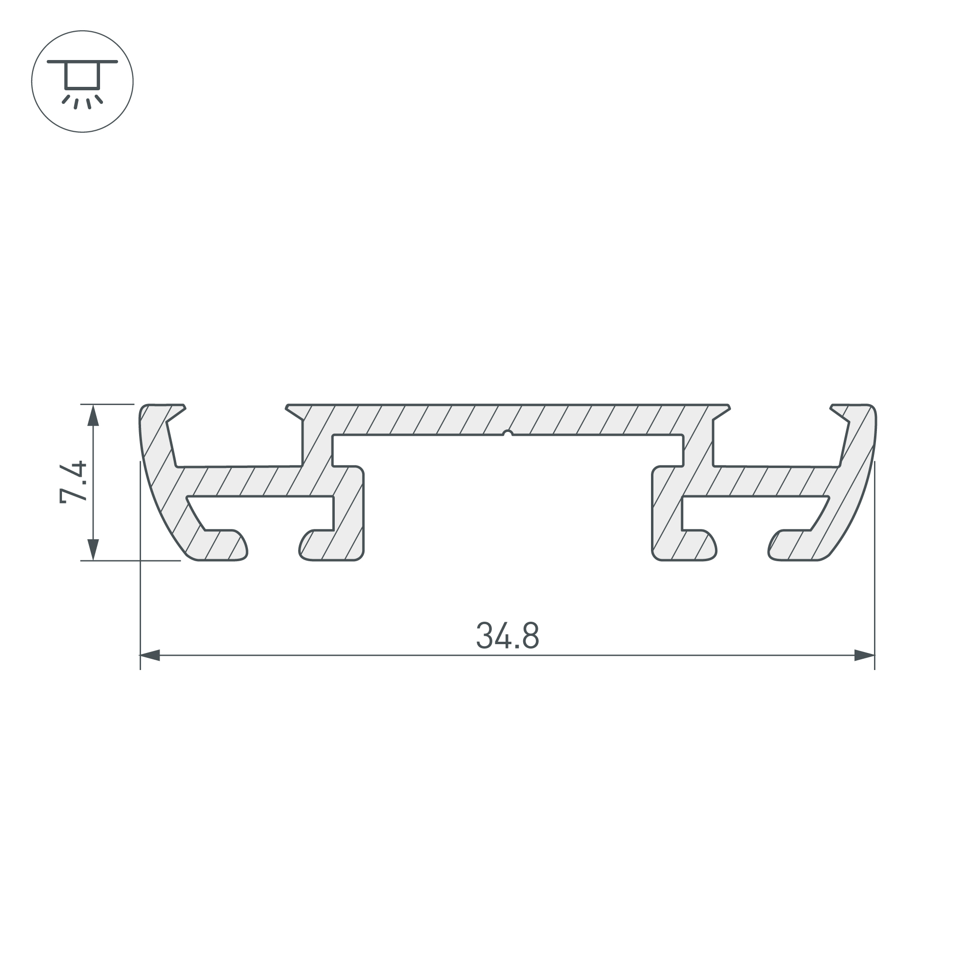 Алюминиевый профиль-основание для установки профиля PHS-A-2000 на клипсы TEK-PLS-CLIP (016389). Внутренний паз 6мм для скрытой проводки. Размер 2000х34.8х7.4мм 019863
