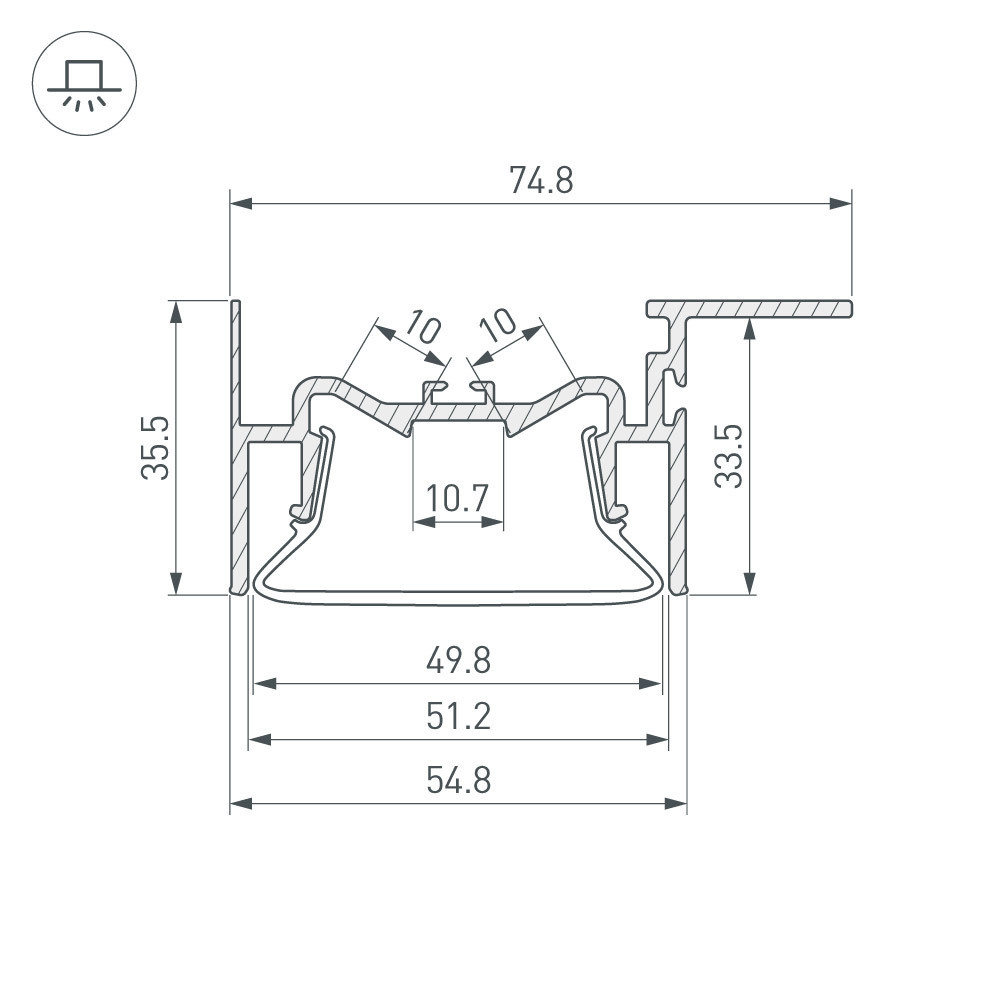 Алюминиевый профиль для натяжных потолков (боковая линиямонтаж к потолку). Решение 2-в-1каркас для крепления натяжного потолка и профиль для установки светодиодной ленты. Для дизайнерских решений «линии света» в натяжных потолках. Монтируется к потолку, накладной способ. Натяжной потолок крепится к профилю с одной стороны. Габаритные размеры (L×W×H): 2000x75x36мм. Ширина площадки для ленты 11мм. Экраны, заглушки и другие аксессуары приобретаются отдельно. Цена за 1 метр.