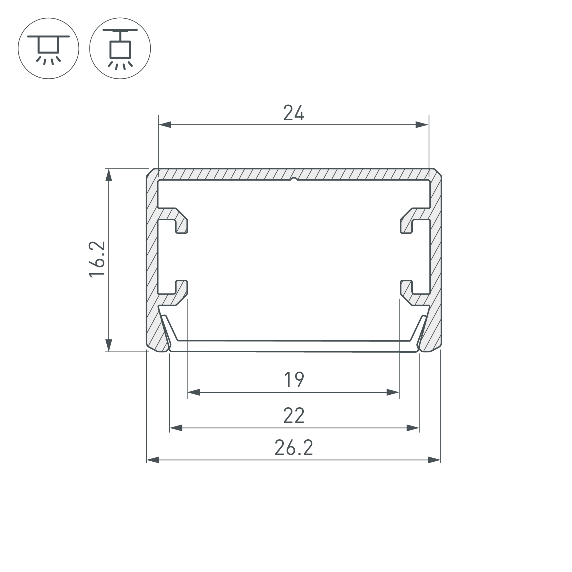 Алюминиевый анодированный профиль для светодиодных лент и линеек. Габаритные размеры (L×W×H): 3000x26,2x16,2 мм. Ширина площадки для ленты 24 мм. Экраны, заглушки и другие аксессуары приобретаются отдельно. Цена за 1 метр. led-ted.ru