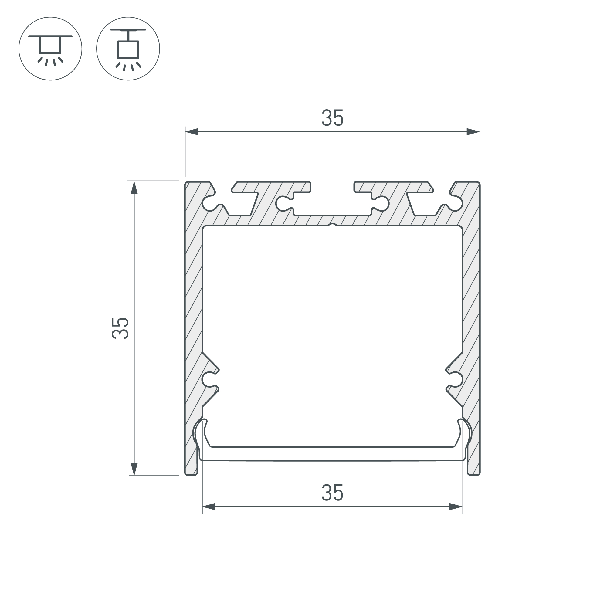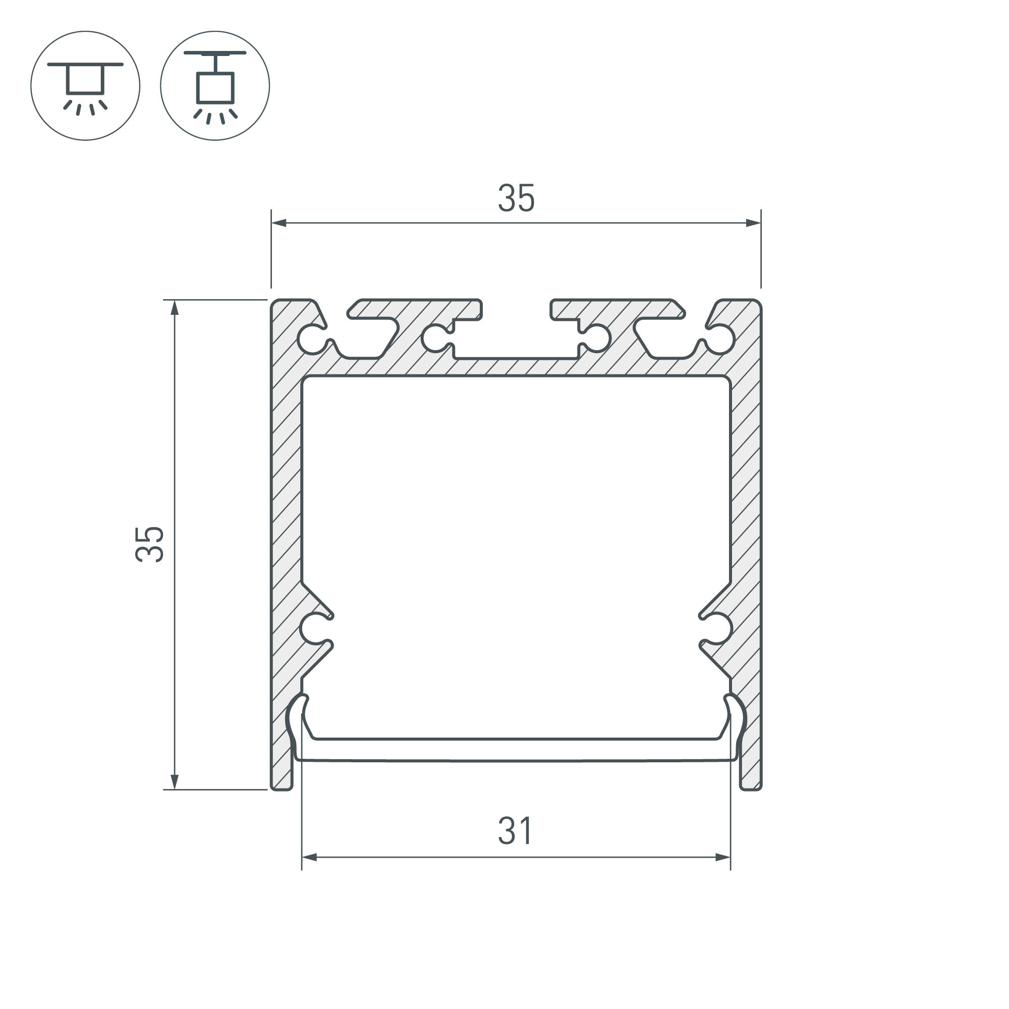 Комплект с экраном. Алюминиевый профиль для светодиодных лент и линеек. Цвет - белый RAL9003 (порошковая окраска). Габаритные размеры (L×W×H): 2500x35x35 мм. Ширина площадки для ленты 31 мм. Заглушки в комплекте (4 заглушки белого цвета, 16 шурупов). Аксессуары приобретаются отдельно. Цена за комплект.