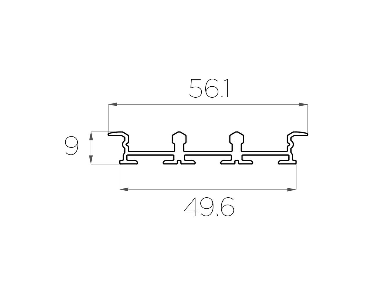 Габаритный размер: 2000x56x9