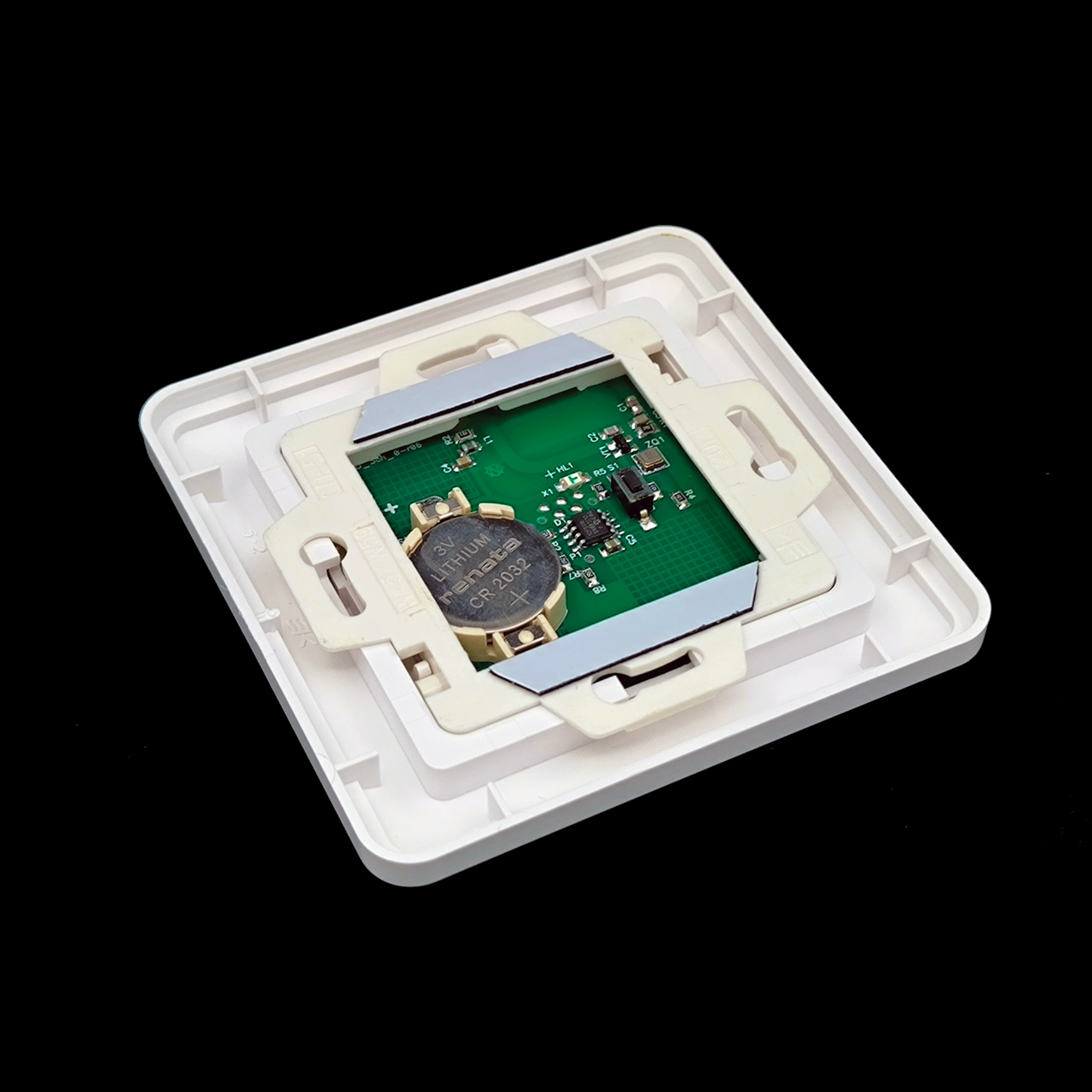 Работает от батарейки CR2032, батарейка входит в комплект поставки.