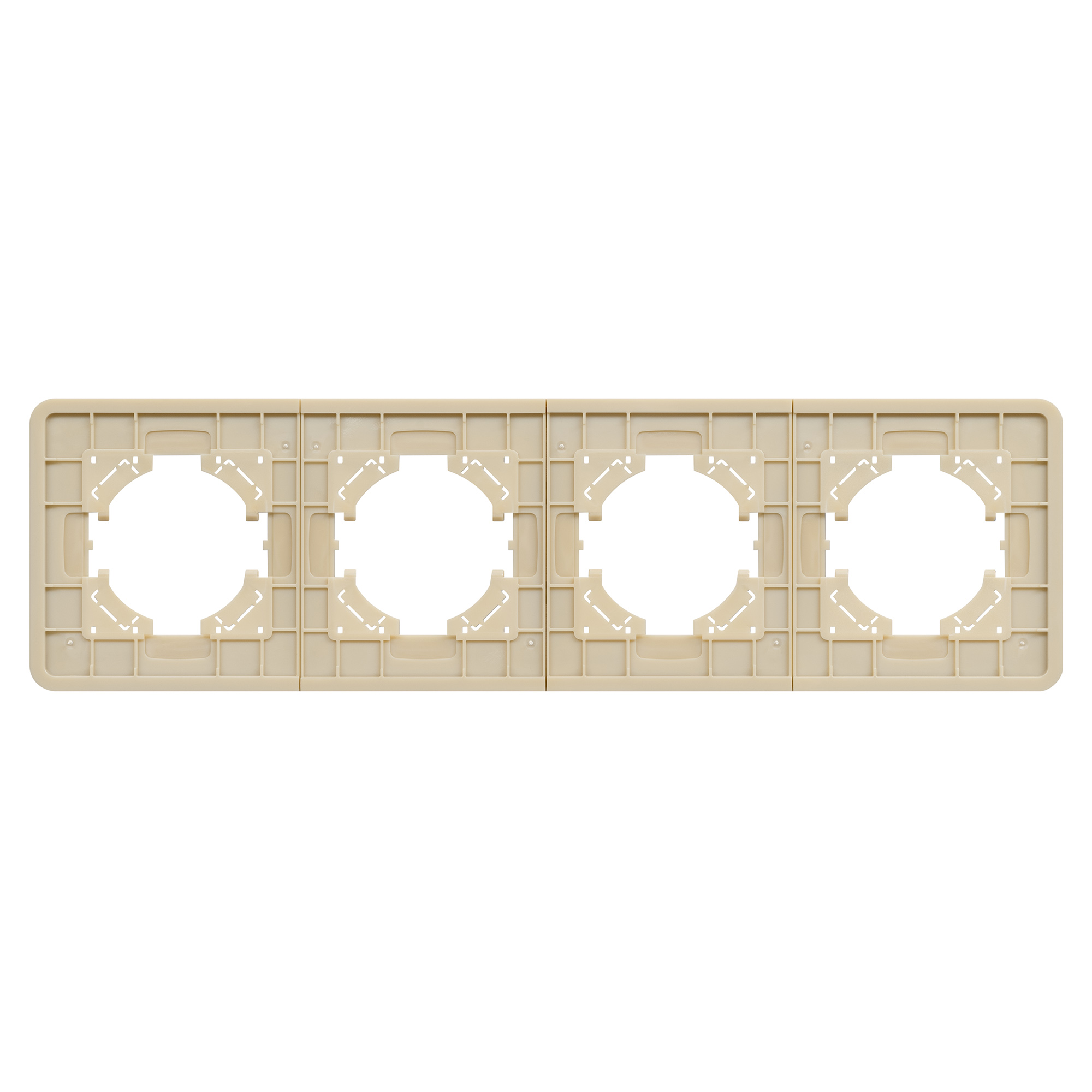 Рамка алюминиевая на 4 поста, под встраиваемый механизм. Цвет - золотой. Среднего уровня герметичности IP20. Ориентация монтажа - горизонтальная (основным ориентиром служат посадочные выступы для накладки механизма).