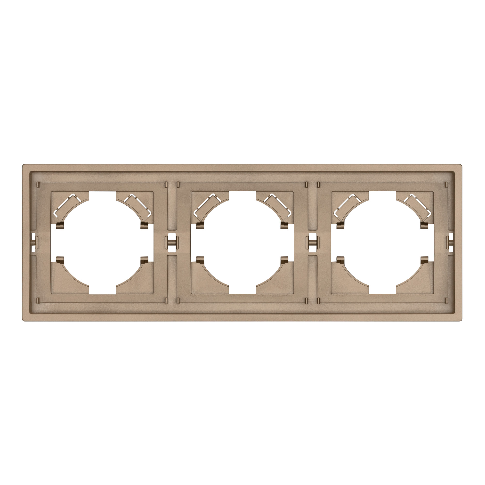 Рамка пластиковая на 3 поста, под встраиваемый механизм. Цвет - золотой. Среднего уровня герметичности IP20. Ориентация монтажа горизонтальная. led-ted.ru Габаритные led-ted.ru Размеры: длина 221 мм, ширина 80 мм, высота 9 мм. Гарантийный срок 12 мес.