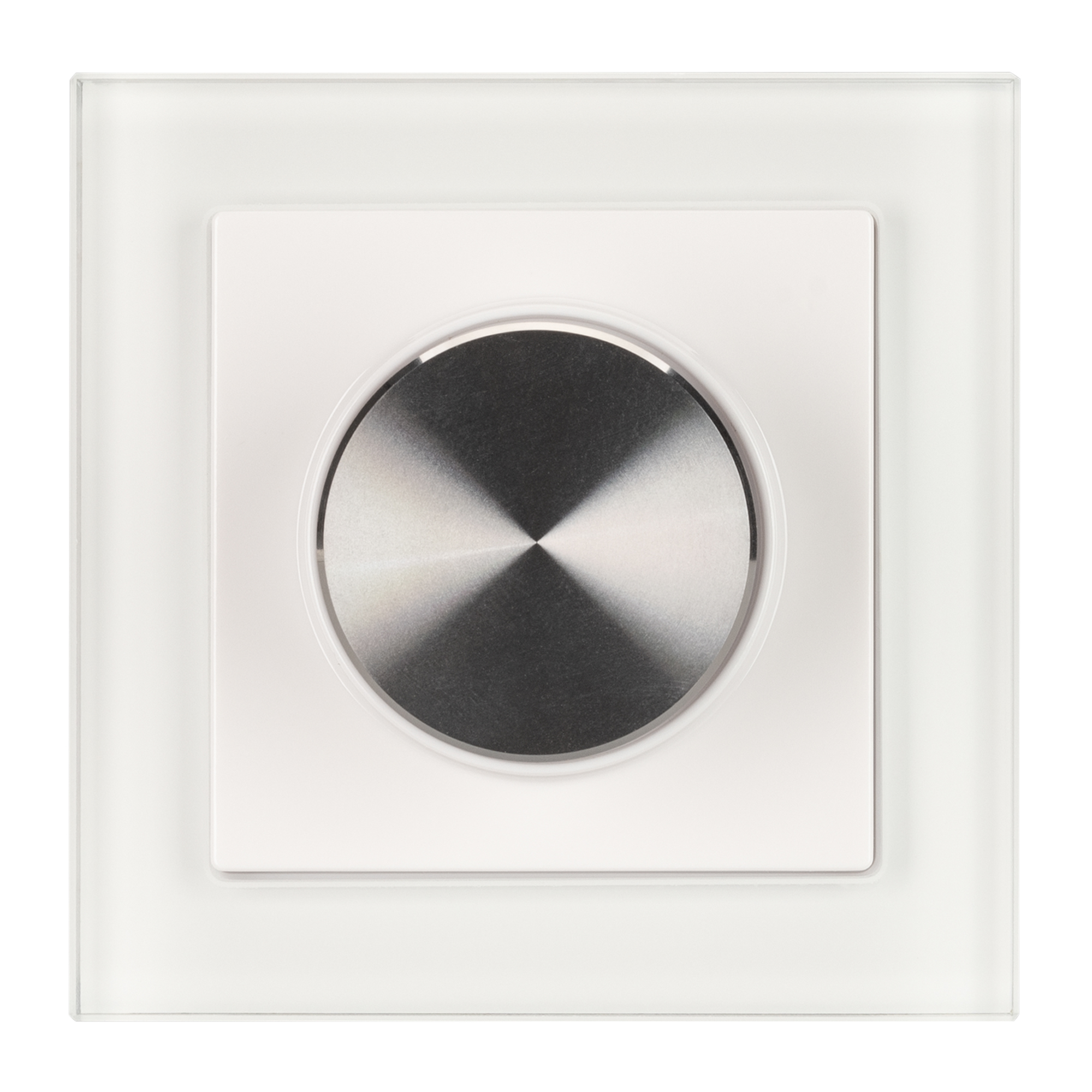 Встраиваемая роторная белая стеклянная панель для работы по протоколу DALI. Включение/выключение, диммирование и управления цветом свечения (MIX, CCT, HCL) 1 группы или широковещательная (broadcast). Поддержка команд DT8, при адресации 2 каналов (CW+WW) на 1 адрес. Установка номера группы выполняется переключателями на корпусе. Подсветка регулятора во включенном состоянии. Питание от шины DALI (4 мА).