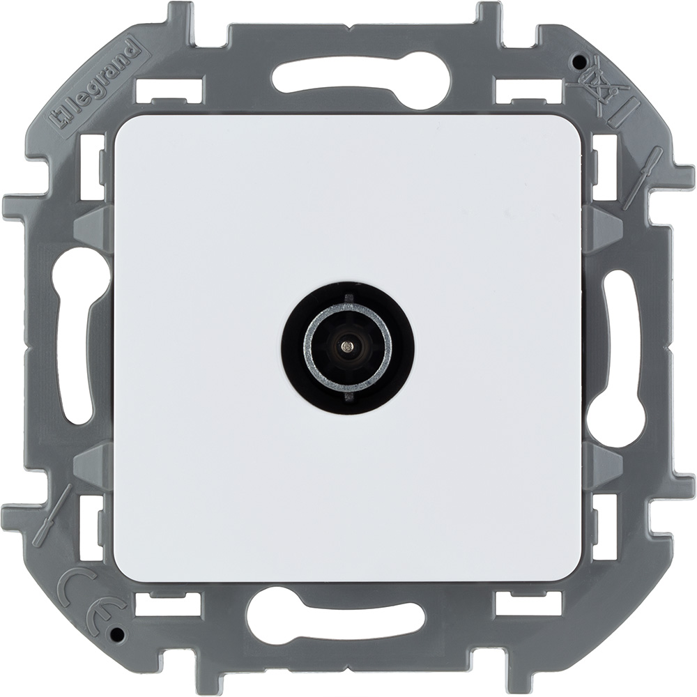 - Присоединение коаксиального кабеля к розетке осуществляется удобным безвинтовым коннектором.
